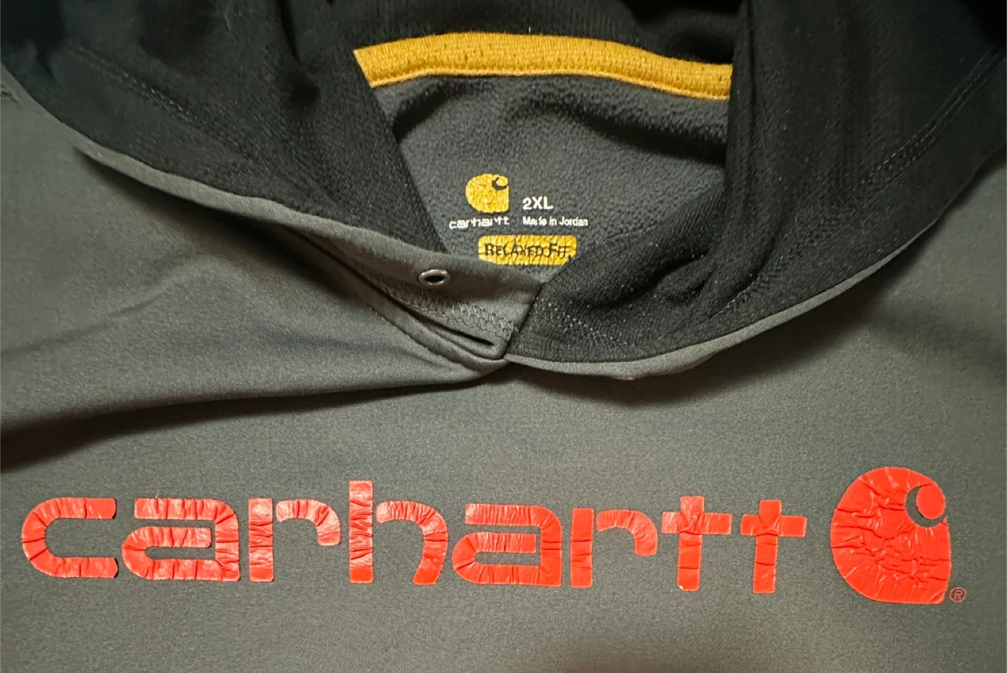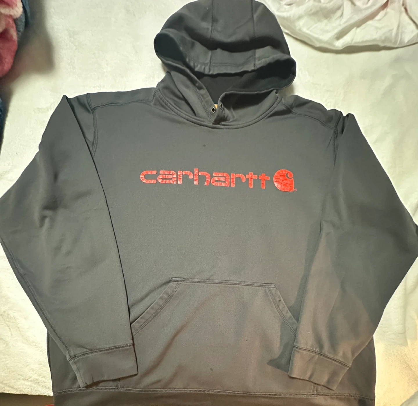 10Selling a Carhartt Relaxed Fit hoodie in size 2XL. It's a comfy and durable hoodie, perfect for everyday wear. The material is a blend of 50% cotton and 50% polyester, making it both soft and resilient!