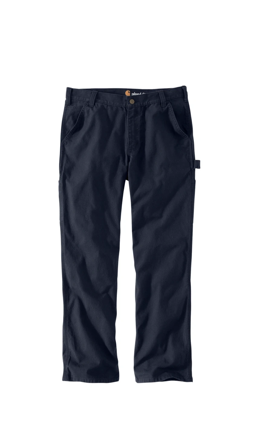 Here are some Carhartt relaxed fit carpenter jeans in a navy colour! They're super durable and great for work or everyday wear. The relaxed fit makes them comfortable for all-day use and the carpenter style provides extra utility with the tool pockets Size 42 waist length 32 only worn 3-4 times bought from marks