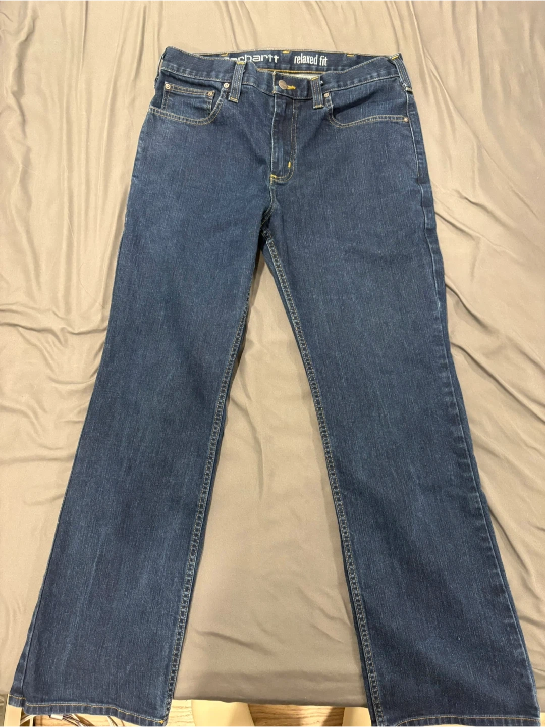 Selling a pair of Carhartt Rugged Flex relaxed fit jeans. Used a few times Low waist, bootcut They're a size 32x30 $35
