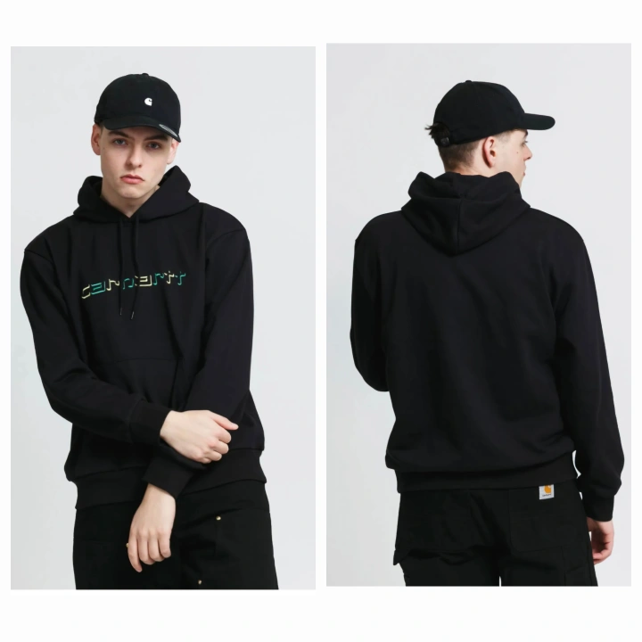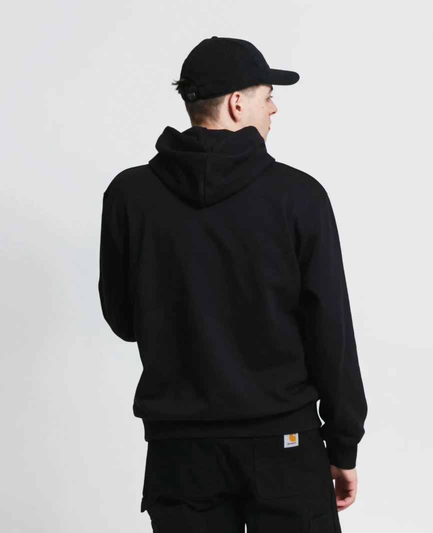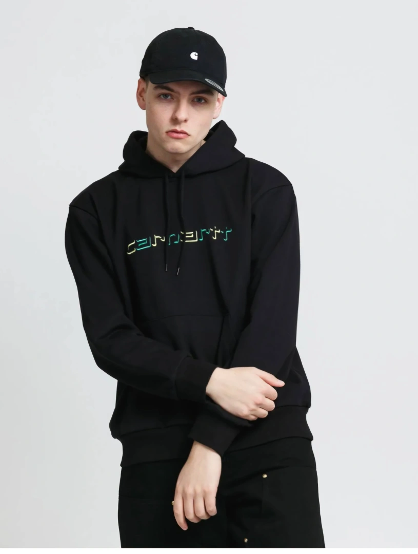Carhartt WIP Shadow Script Hoody in Black makes an ideal layering piece for the colder periods of the year with a unique take on the signature Carhartt aesthetic. Constructed with a drawstring adjustable hood and featuring a kangaroo pocket at the front along with embroidered branding across the chest.