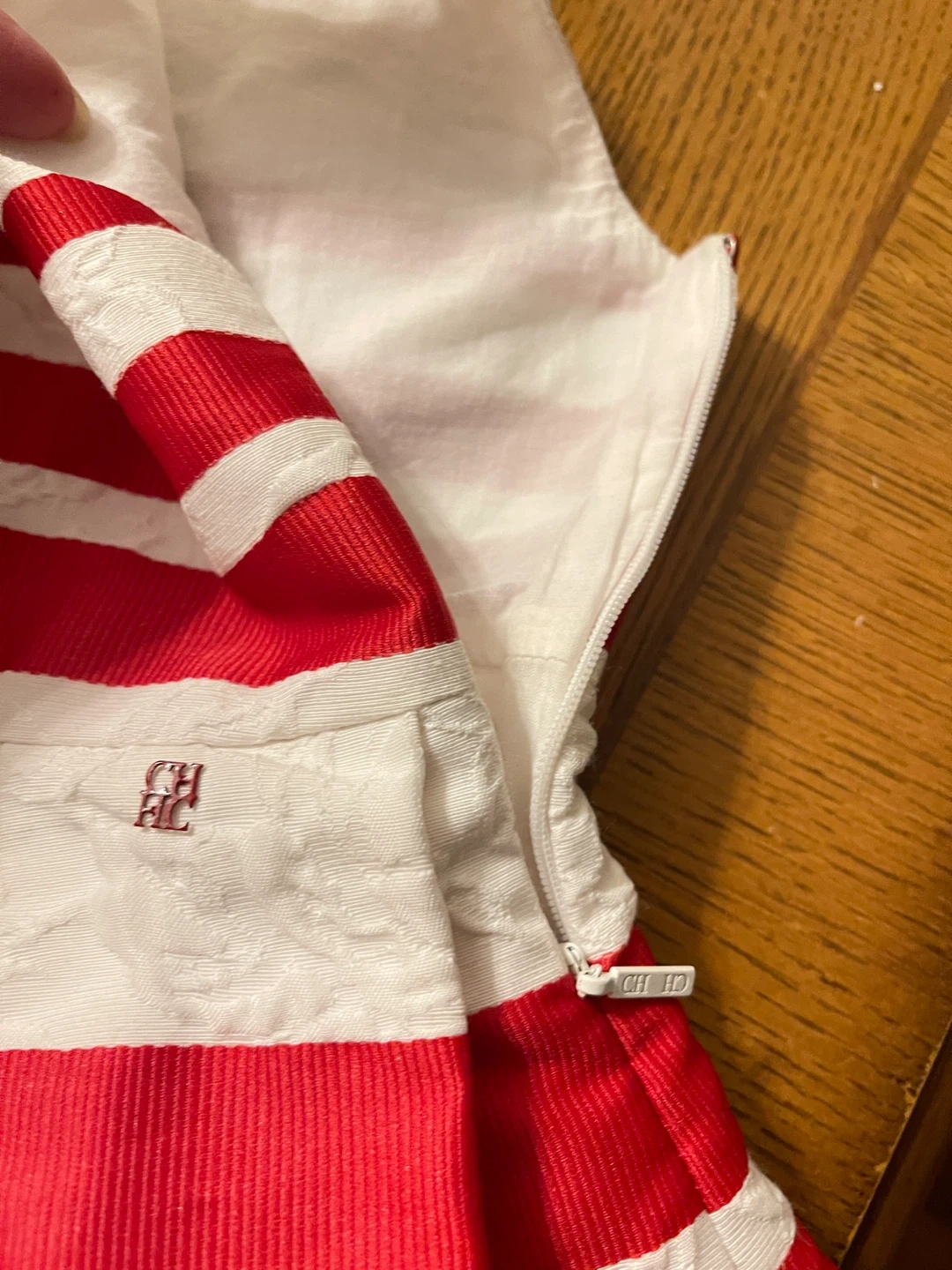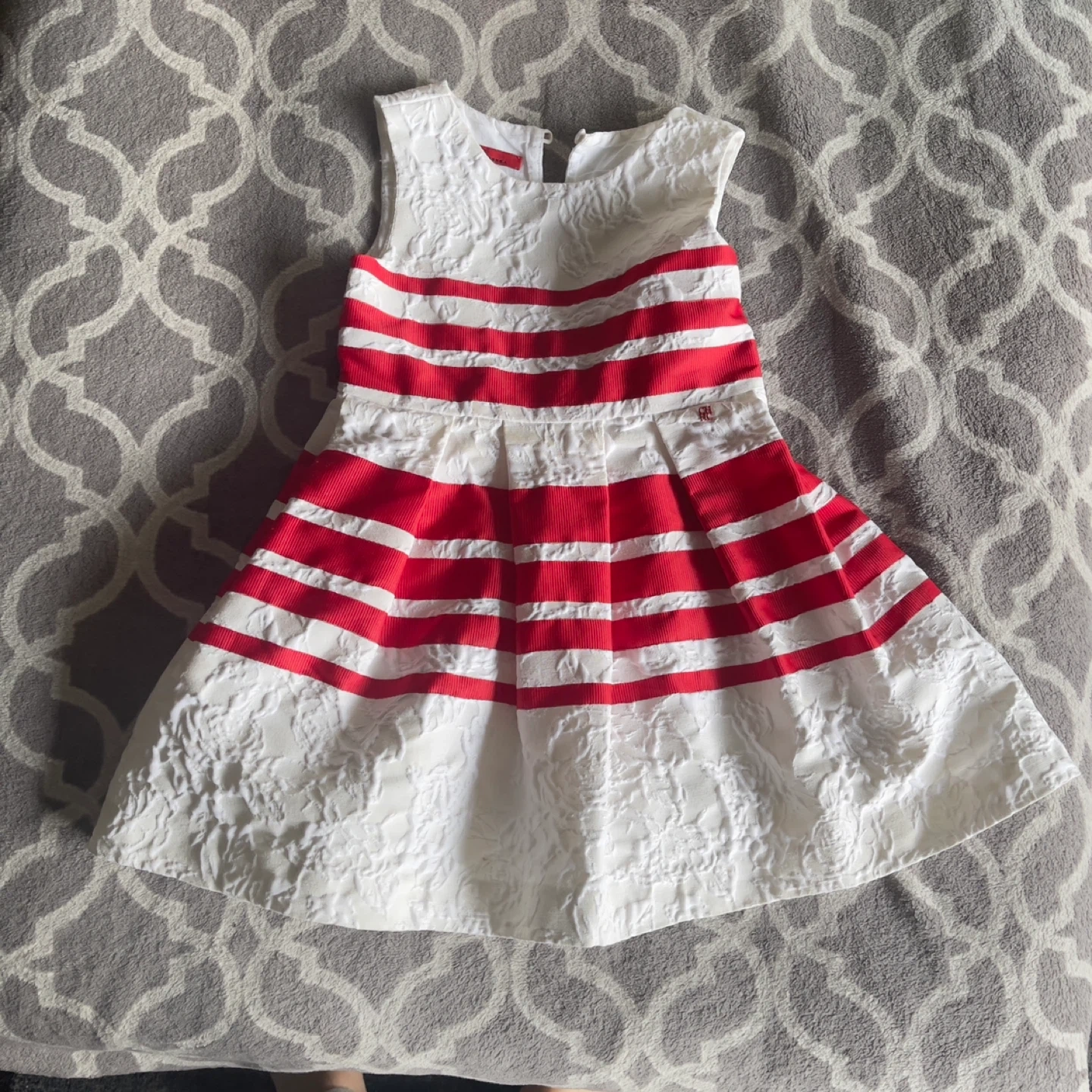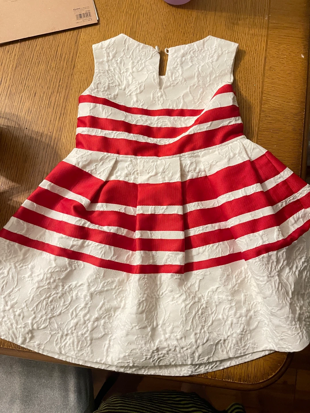 Adorable Carolina Herrera dress for girls, size 4! It features a beautiful white and red striped pattern with a textured white fabric. Perfect for any special occasion or just a fun day out With no more stuck but these are the price for original. Like new .. in good condition firm price $55
