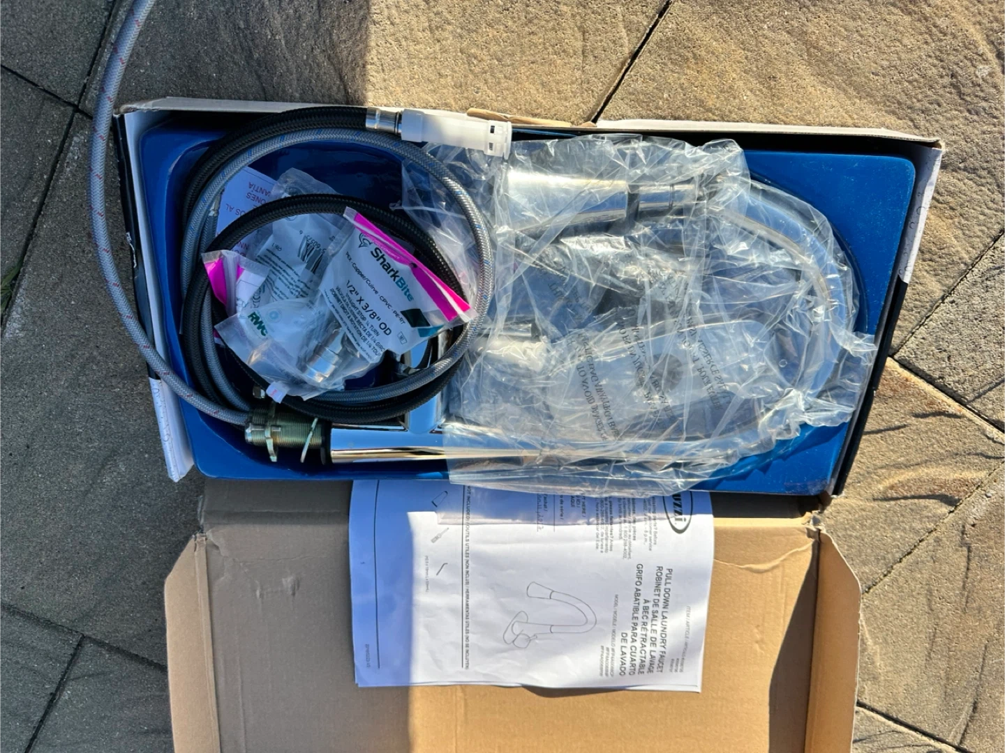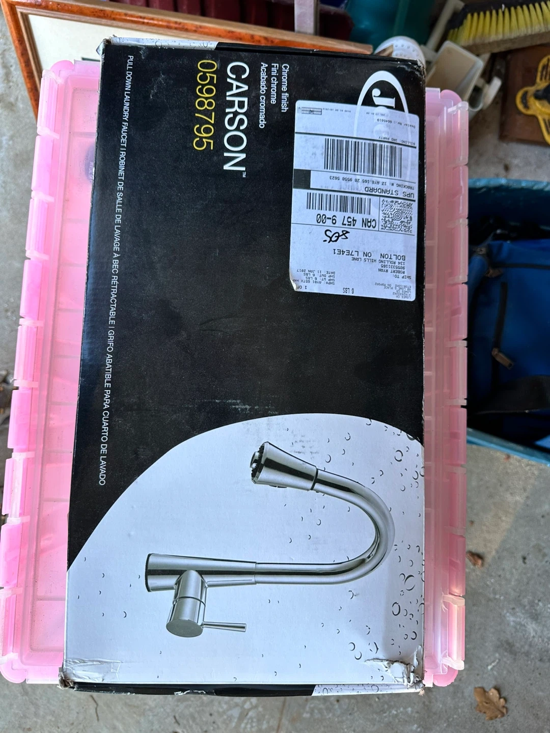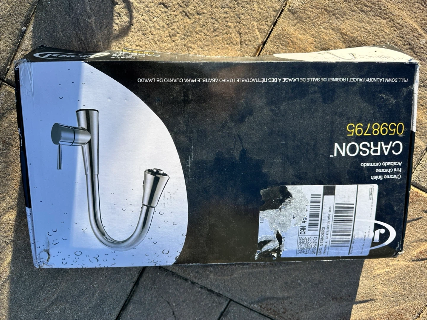 Selling a Jacuzzi (CARSON model) pull-down laundry faucet with a chrome finish! It comes in the original box with all the components and instructions included. This faucet is perfect for any laundry room or utility sink. Feel free to message if you have any questions!