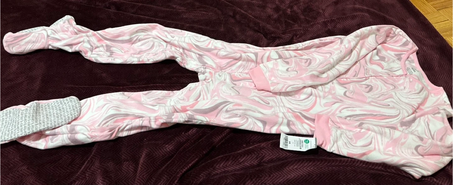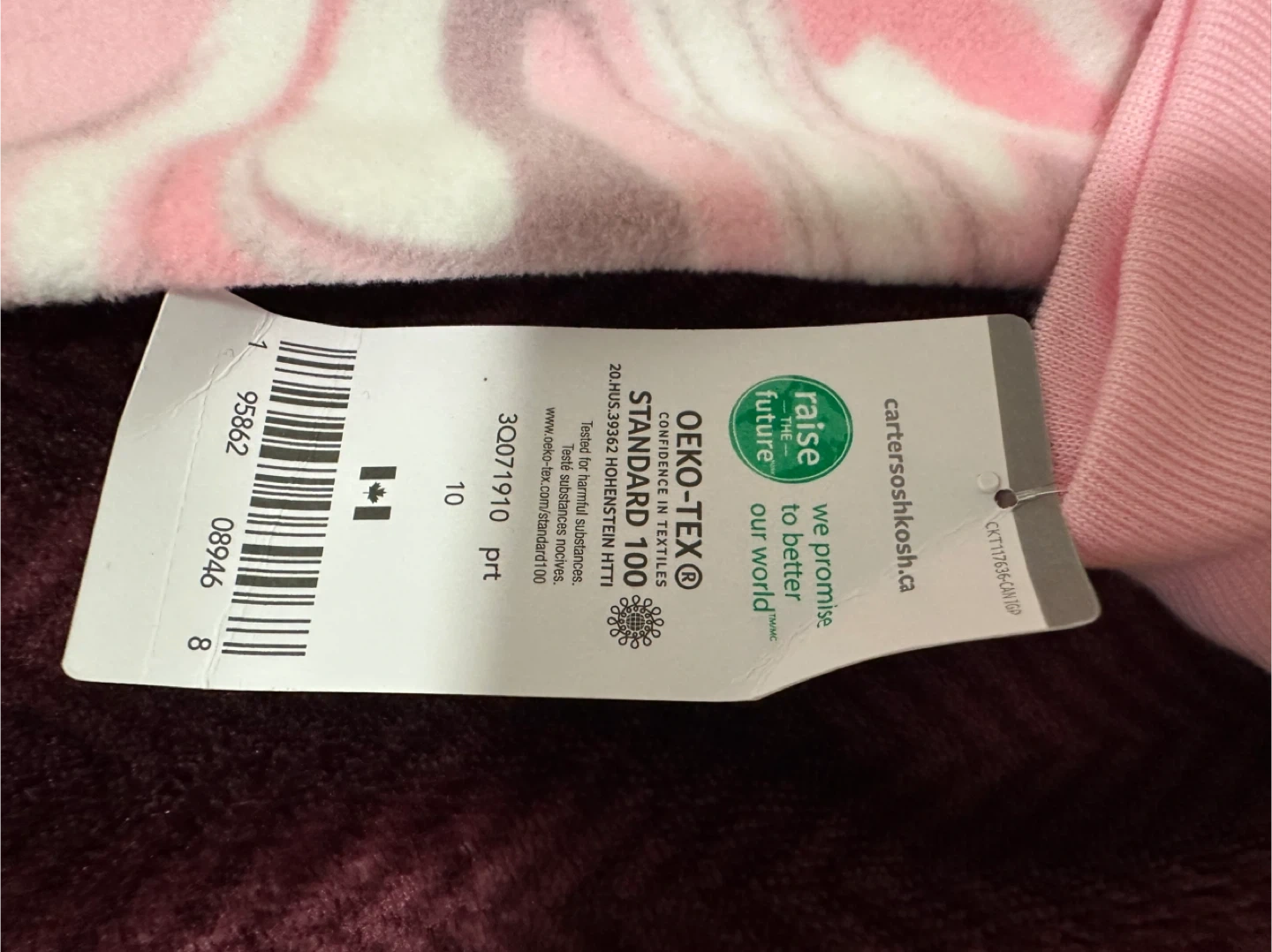 15Cozy Carter's fleece footed pajamas in size 10/10A! These jammies feature a cute pink swirl pattern and are perfect for keeping your little one warm and snuggly. They're new.