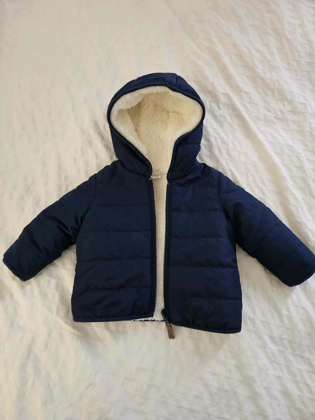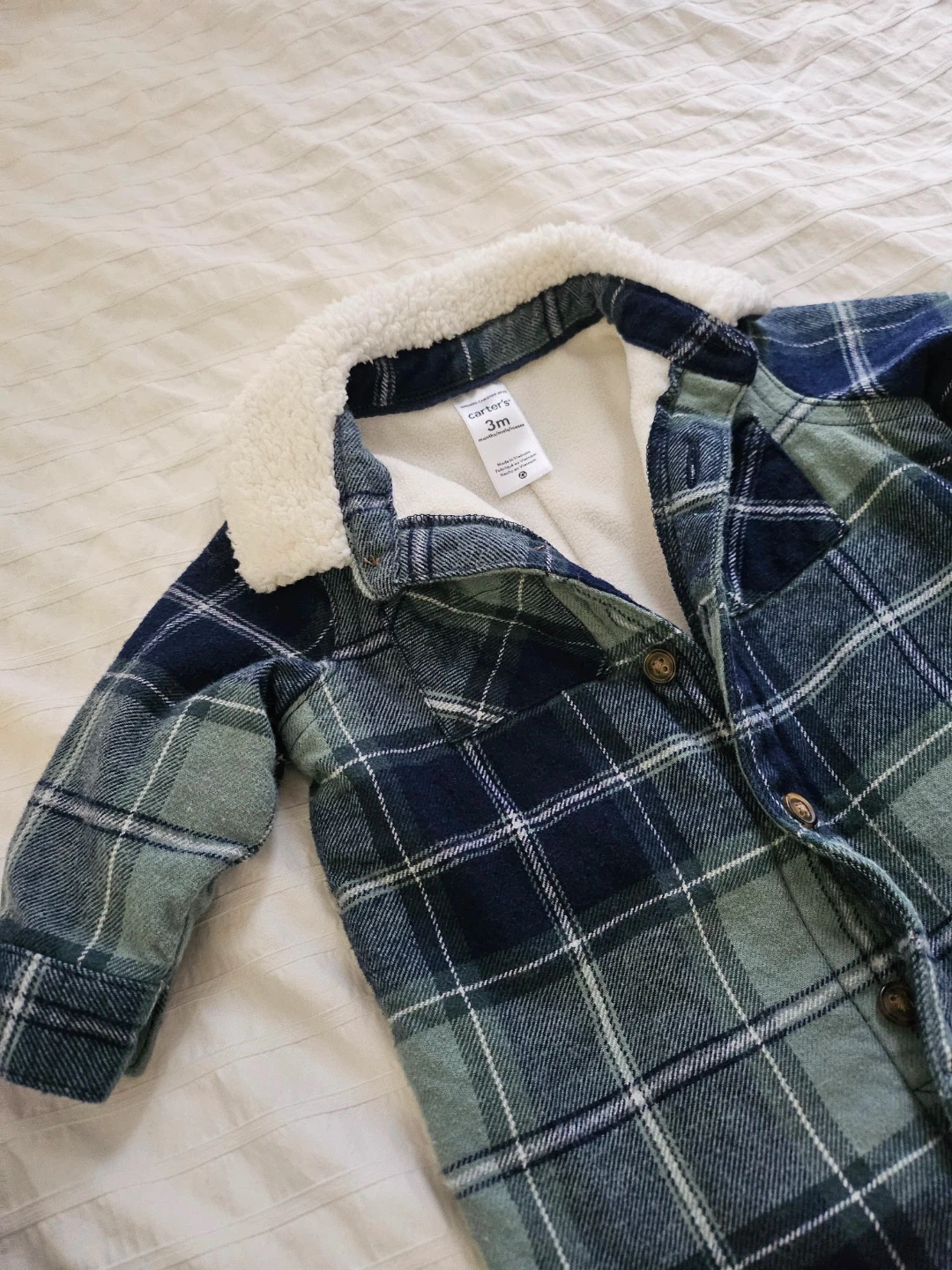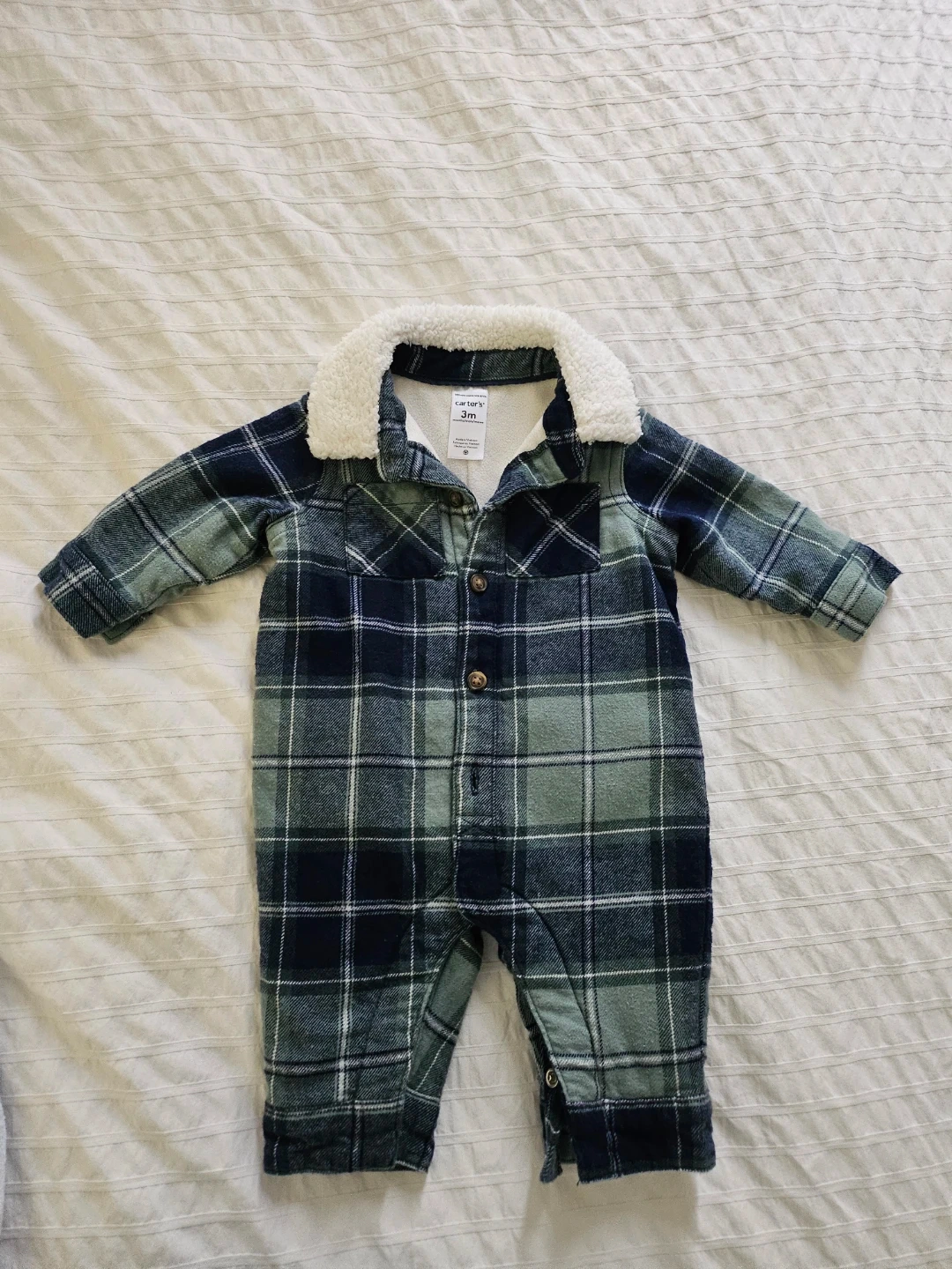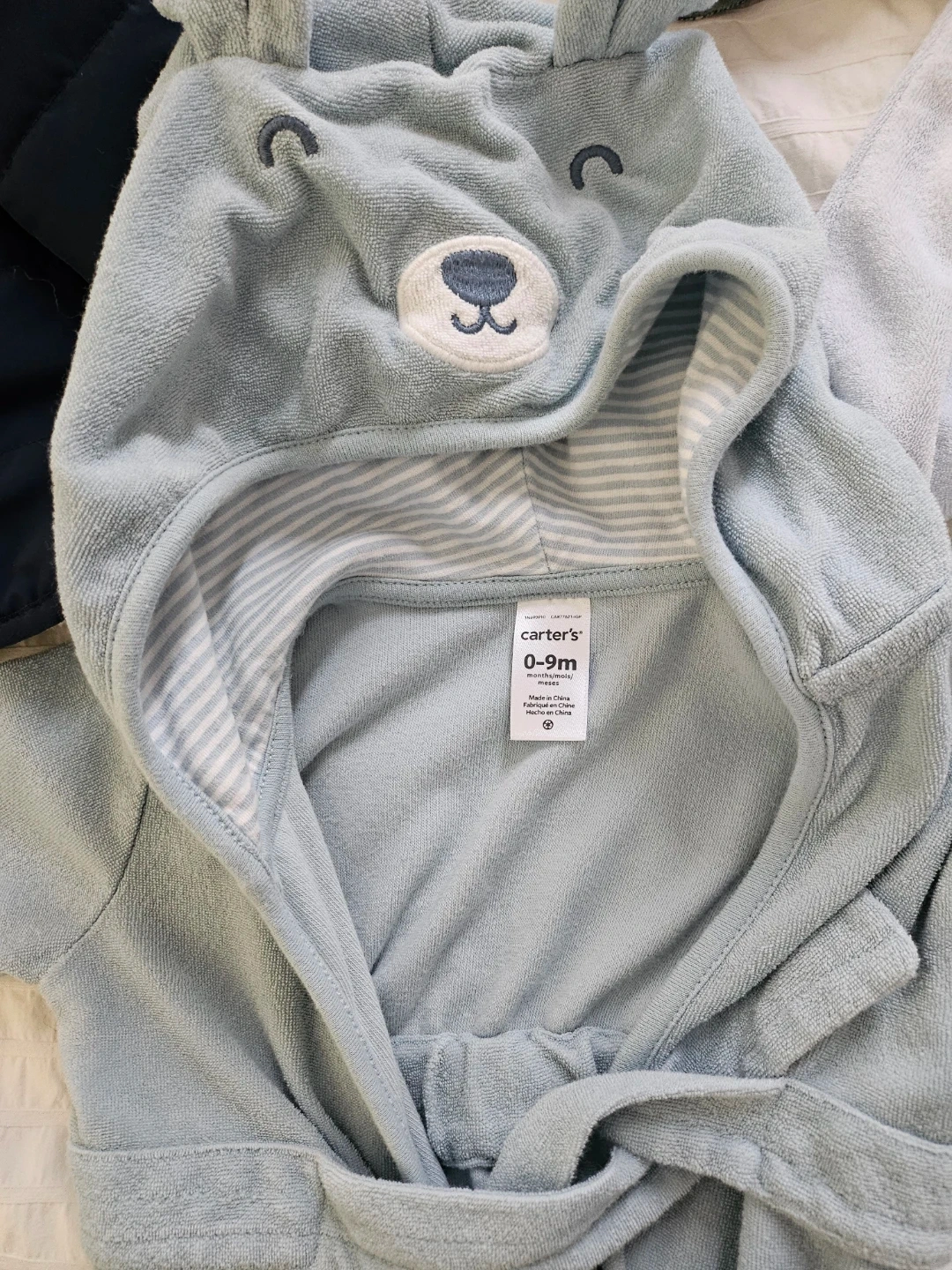 21Selling a bundle of baby clothes from Carter's! Includes a navy blue hooded jacket (6m) a robe (9m) a matching hooded sweater with pants and a cute plaid sherpa-lined romper (3m). Perfect for keeping your little one warm and cozy.