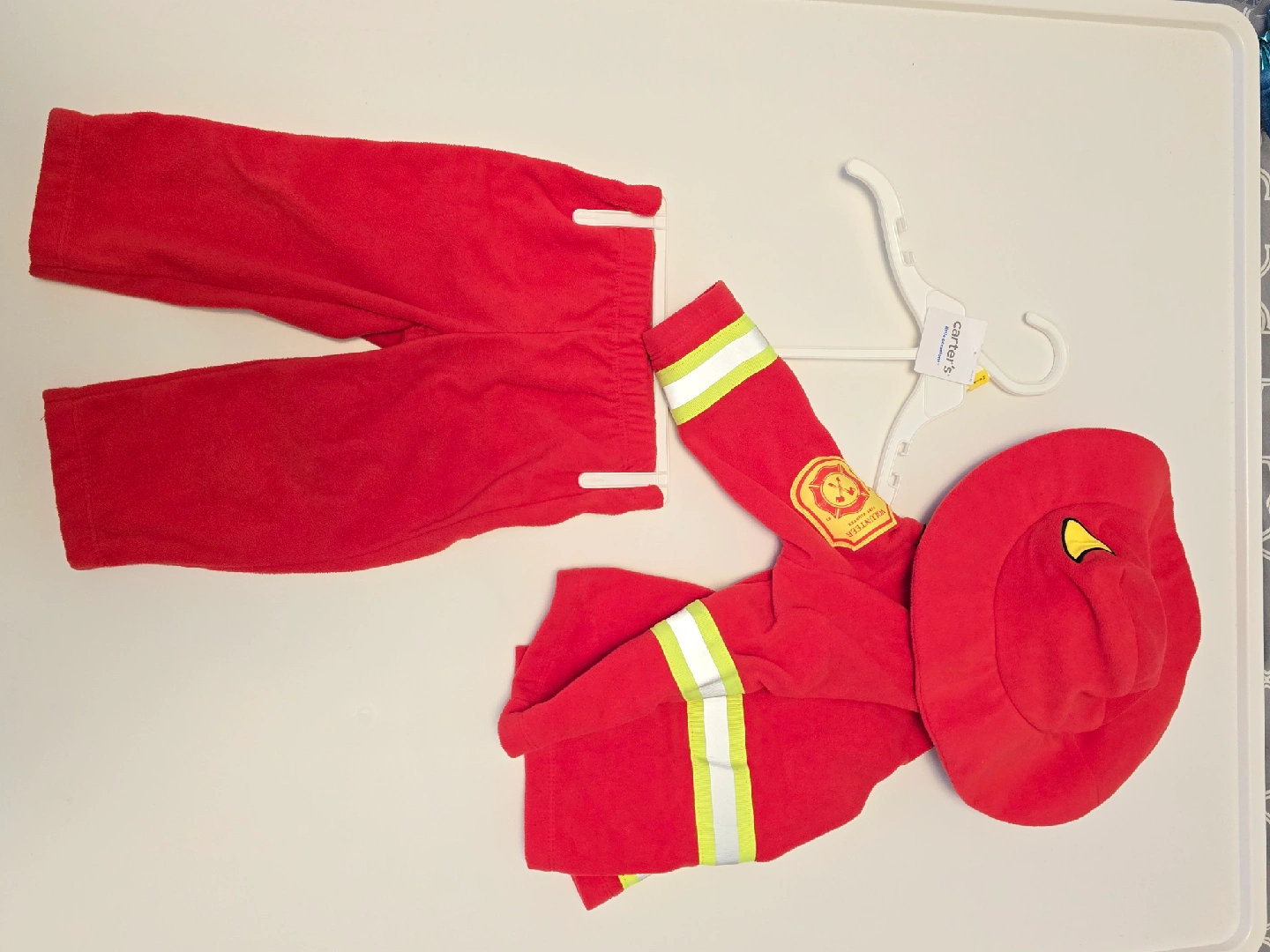 301Carter's Fire Fighter Fireman Baby Costume, 6-9 months Your little one can play pretend in this adorable Carter's firefighter costume! It includes a jacket with hat attached, and pants. Comes with original hanger. Gently worn once. Smoke-free, pet-free home. ☑️ If the posting is up then the item is still available. ☑️ Price negotiable if purchasing multiple items. ☑️ Cash only. ☑️ Can meet at Osgoode subway station (Queen & University), or Gerrard Square Mall. No delivery.