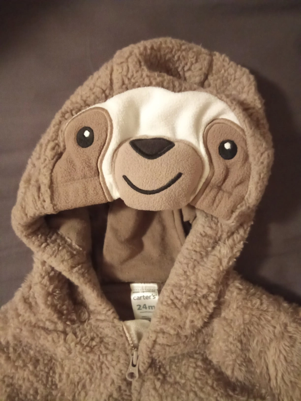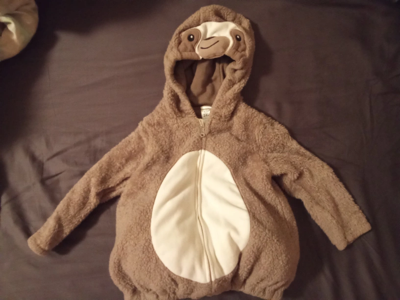 Super cute Carter's sloth jacket/ costume for your little one! It's in great condition and perfect for dress-up or a cozy outfit. The size is 24 months. Great for every day use and/or for Halloween First come first serve
