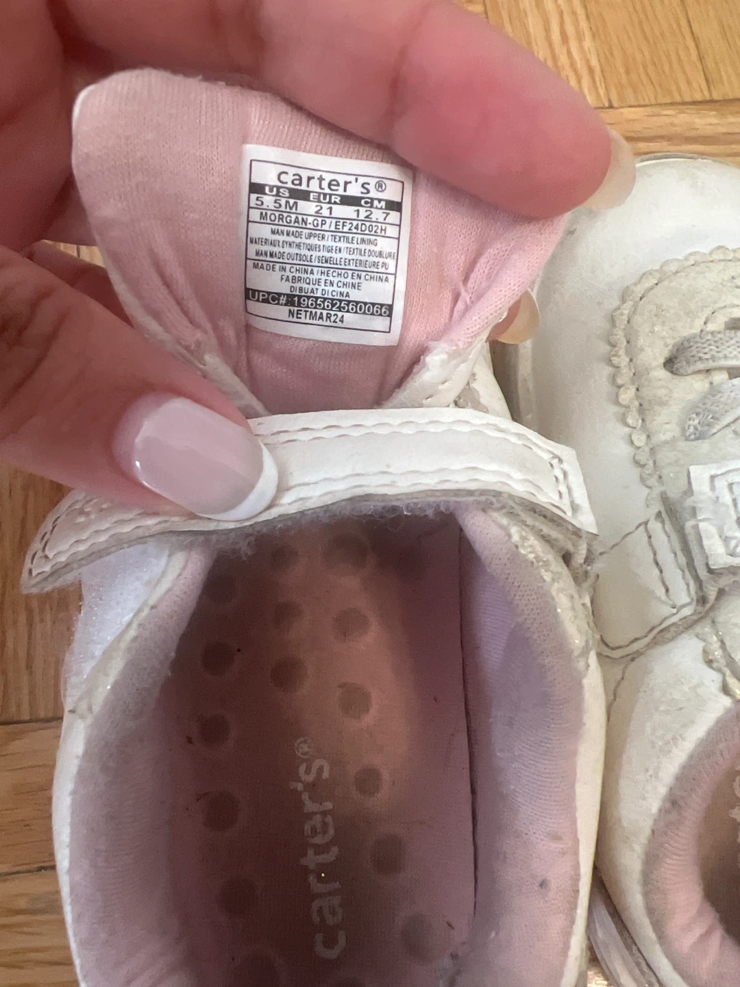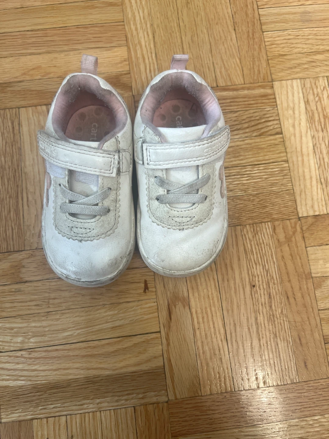 20Selling a pair of Carter's white sneakers in toddler size 5. They're in good condition and perfect for your little one to run around in! The shoes feature a hook and loop closure for easy on and off. The upper is made of textile, and the outsole is made of rubber for durability.