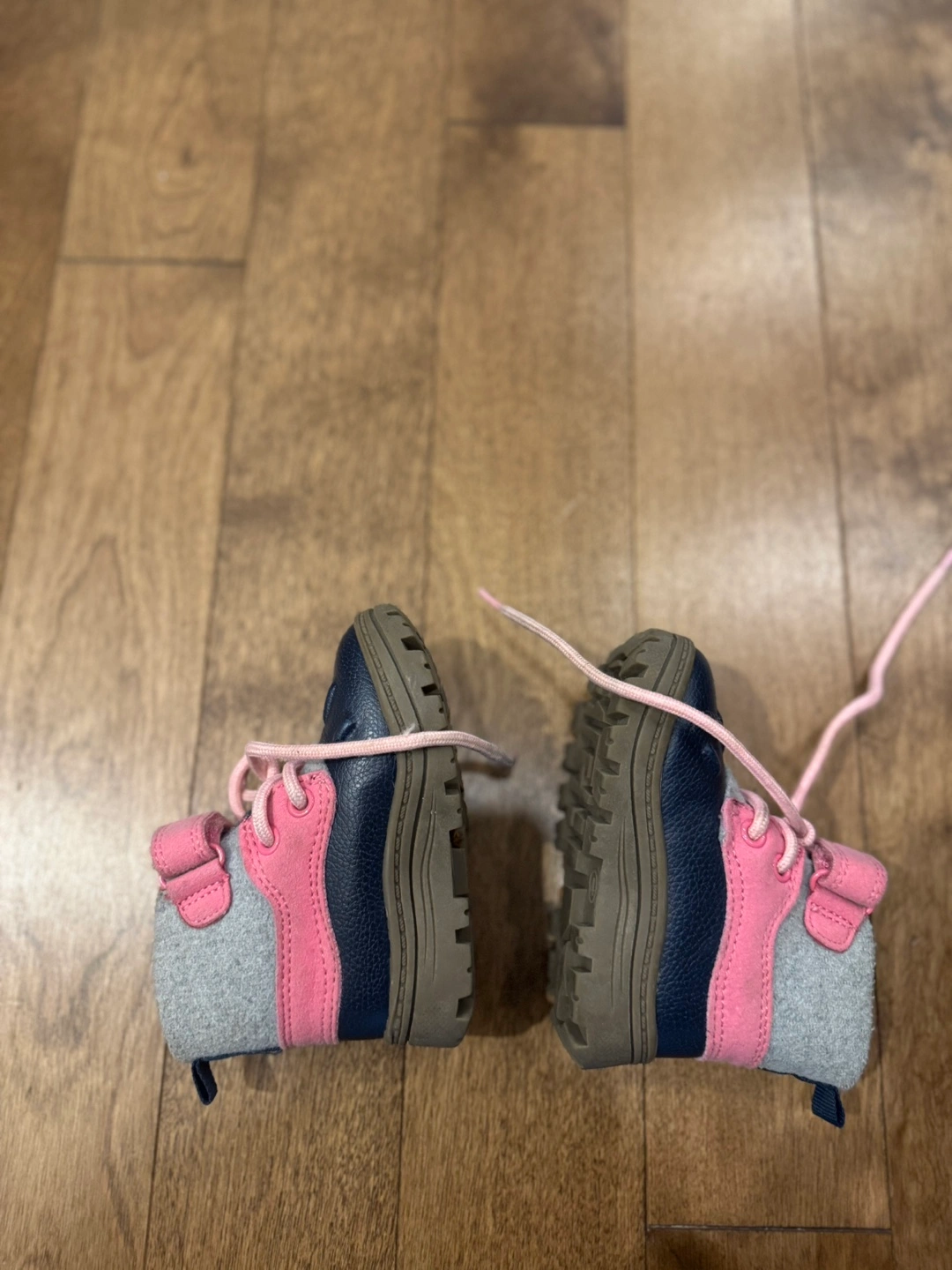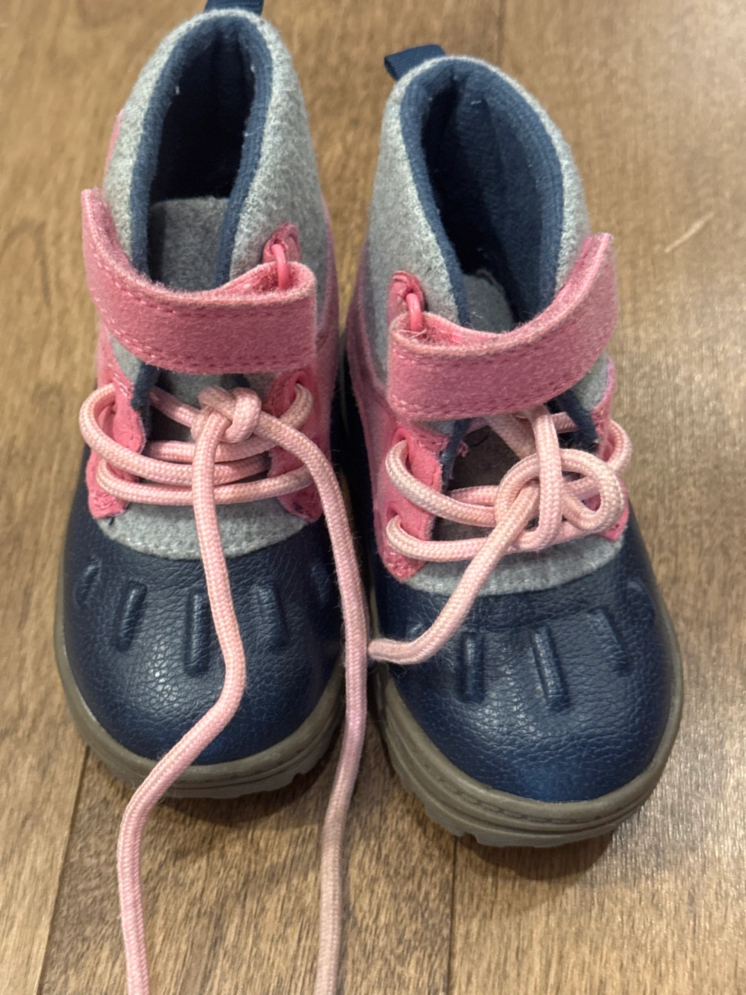 These adorable carters winters boots are perfect for your little one! They're a size 4 and feature a cute colour combination of navy, pink, and grey. Great for keeping tiny feet warm and dry during those Canadian winters