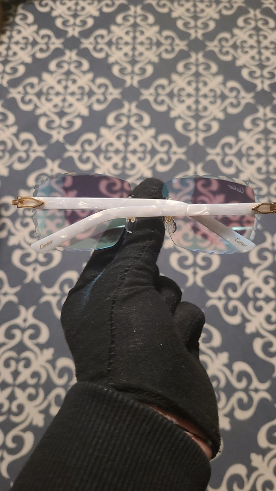 Selling a pair of Cartier rimless sunglasses. They have a stylish and unique design. The glasses are in good condition and ready for a new owner