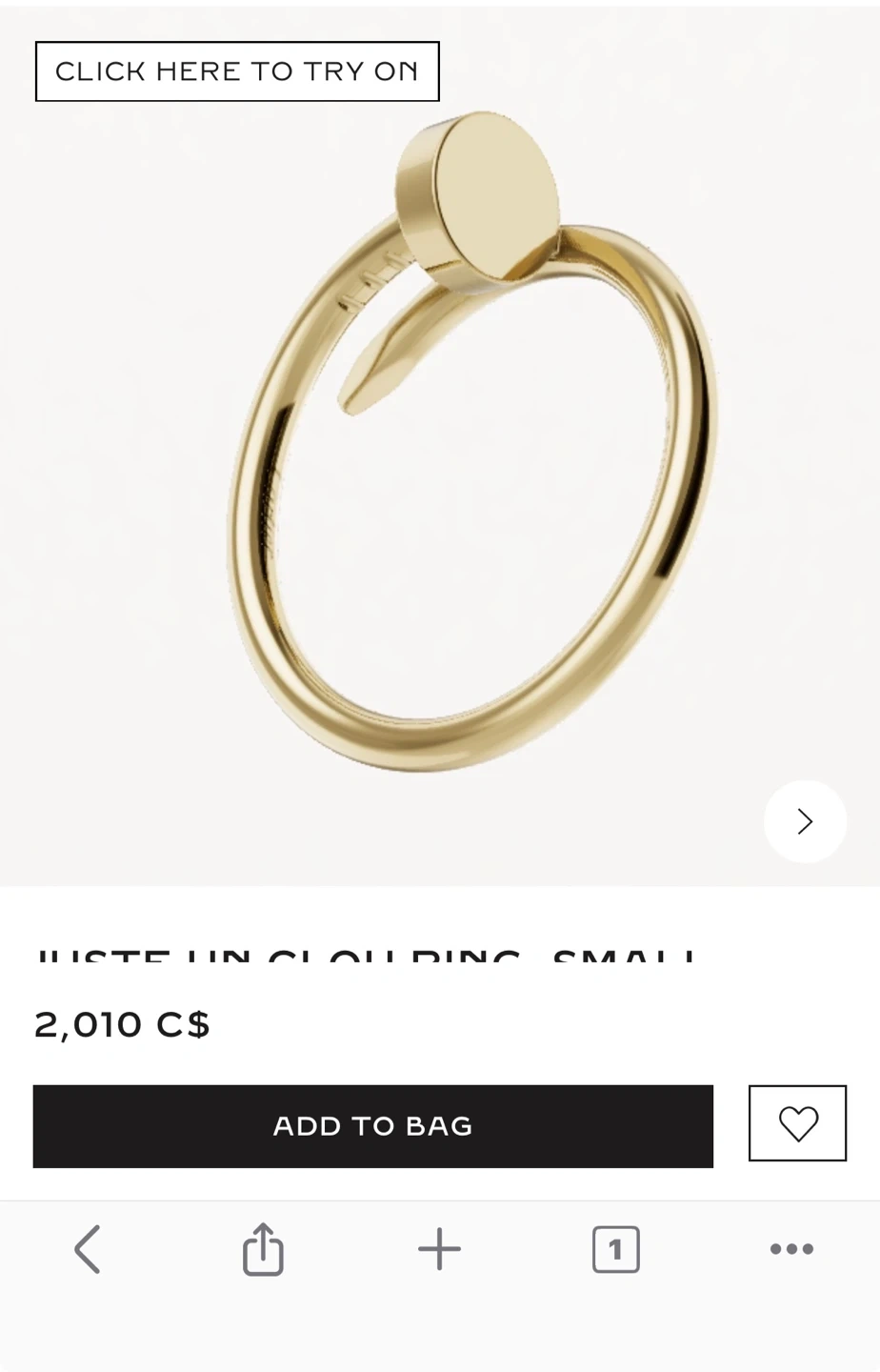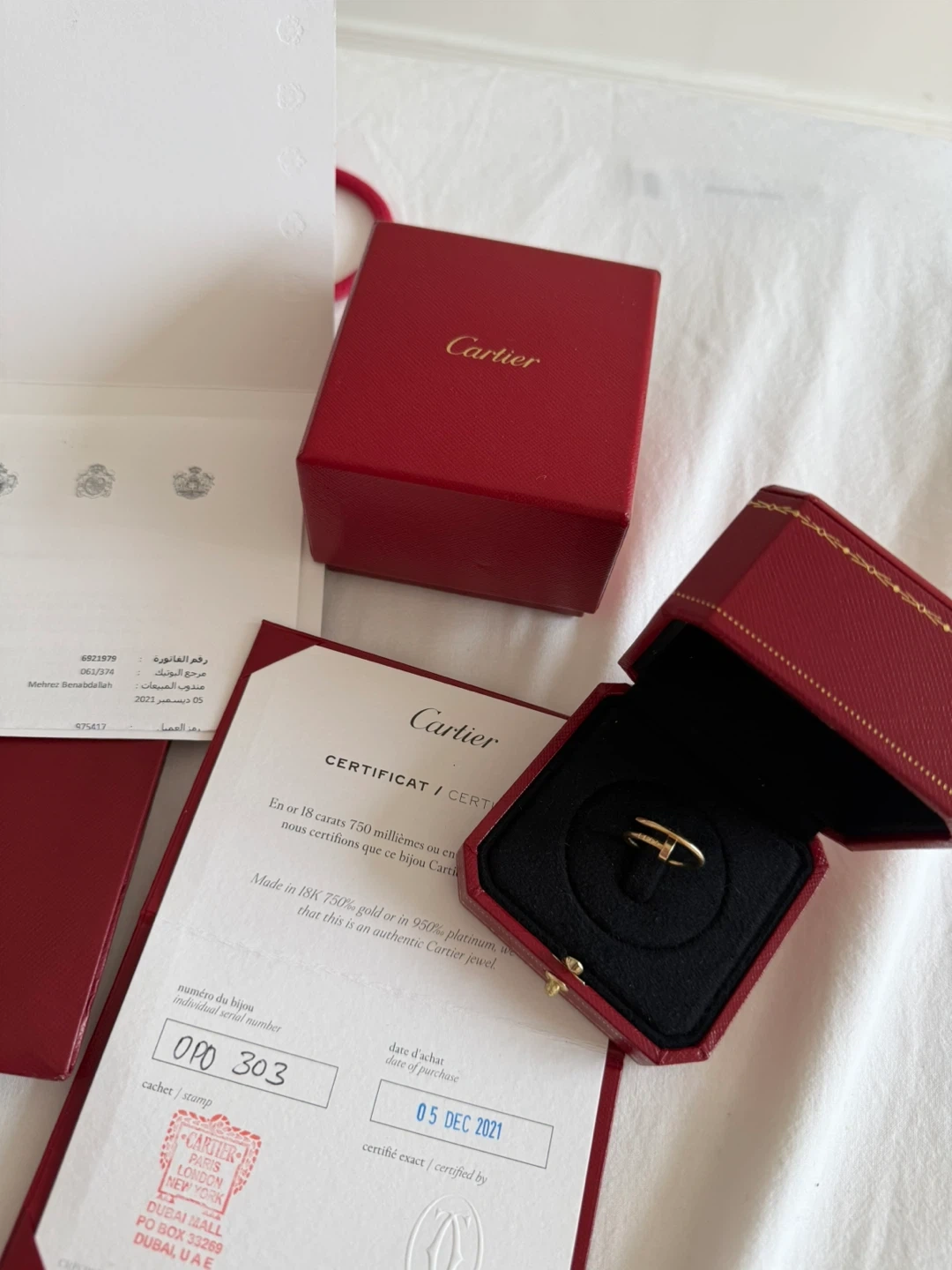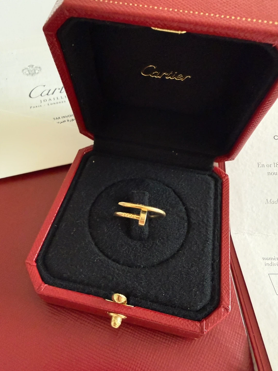 Selling a Cartier Juste Un Clou ring! It's the small model in yellow gold and comes with the original box and certificate. Retails for $2,010 CAD + tax
