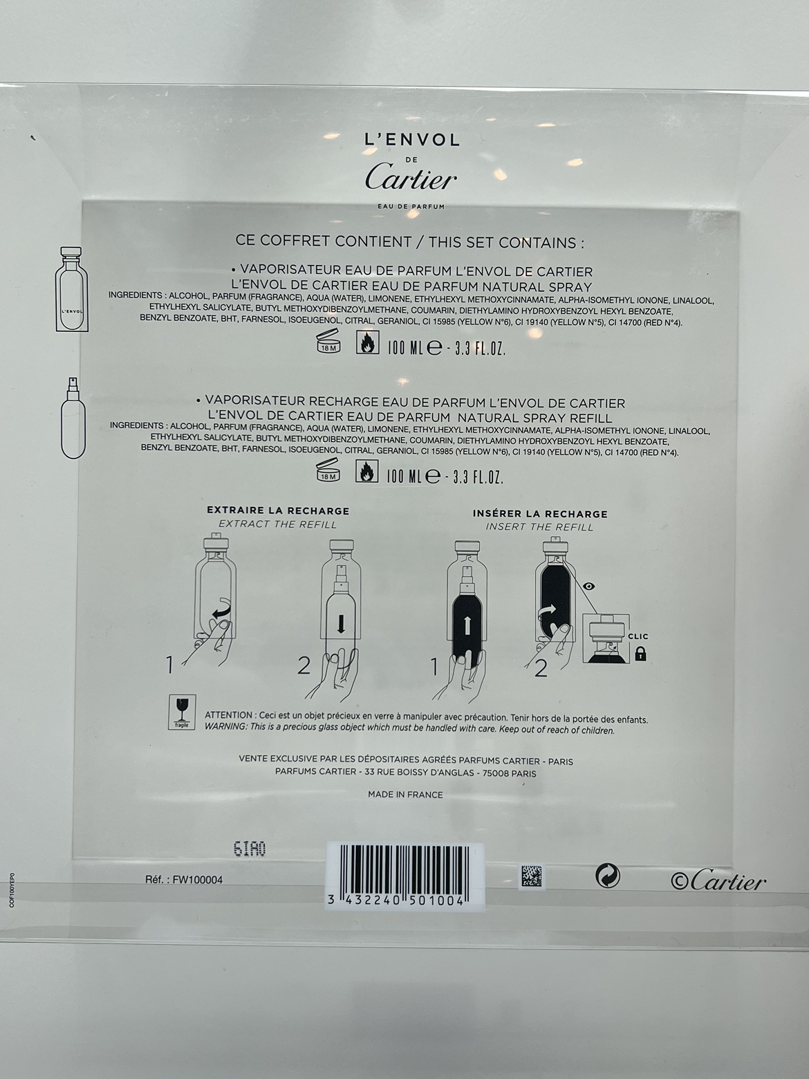 1000+Cartier Eau de Parfum L’envol with refill. 2 bottles 100ml each New in box