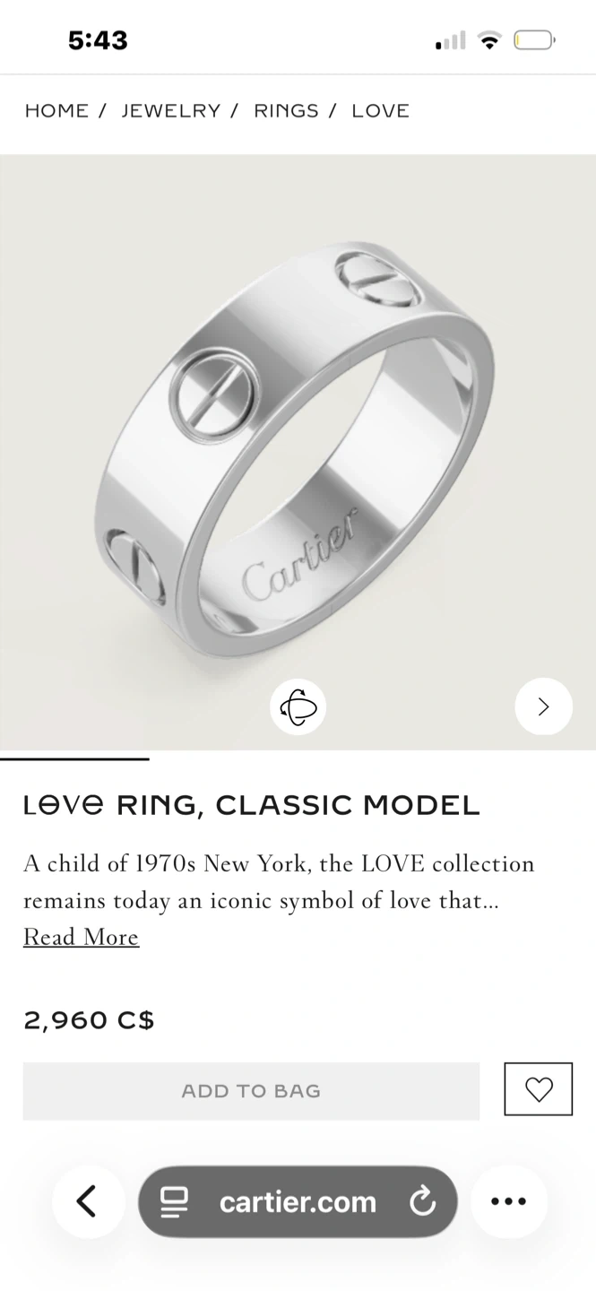 Selling a Cartier Love Ring, classic model. It's in good condition and a timeless piece. It’s white gold 750. Originally bought for $2,960 send offers