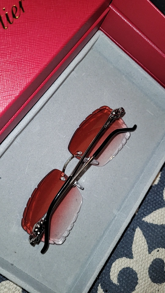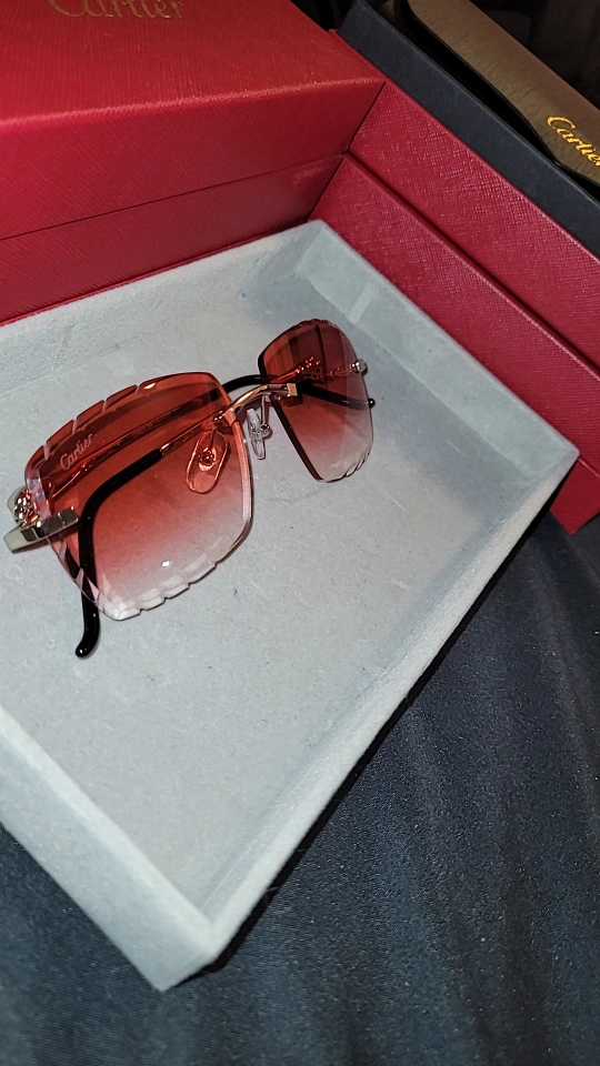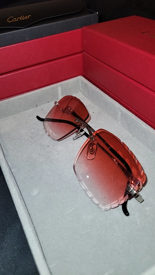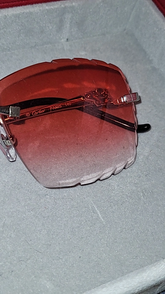 Selling a pair of Cartier sunglasses, marked 'Paris 140' on the arm. The lenses have a unique gradient from dark to light. Comes with the original box!