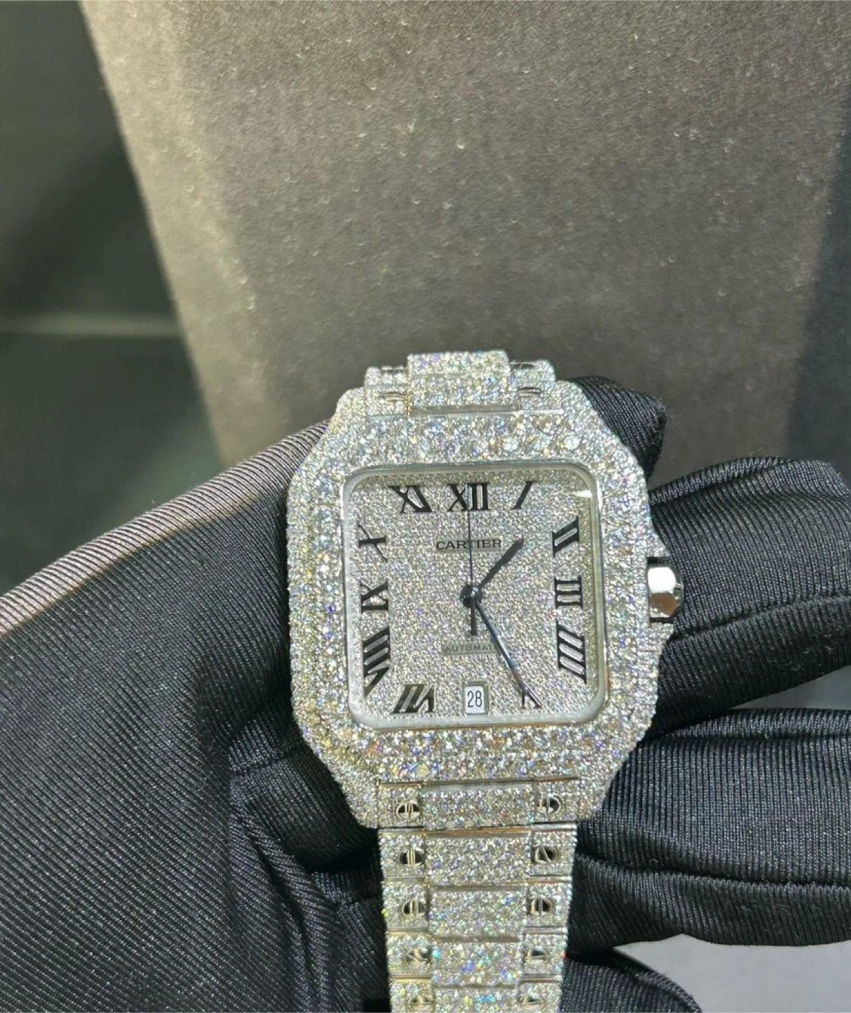 Selling a stunning Cartier Santos De Cartier watch, fully iced out with diamond vvs. ✅ pass diamond test Comes with box and paper