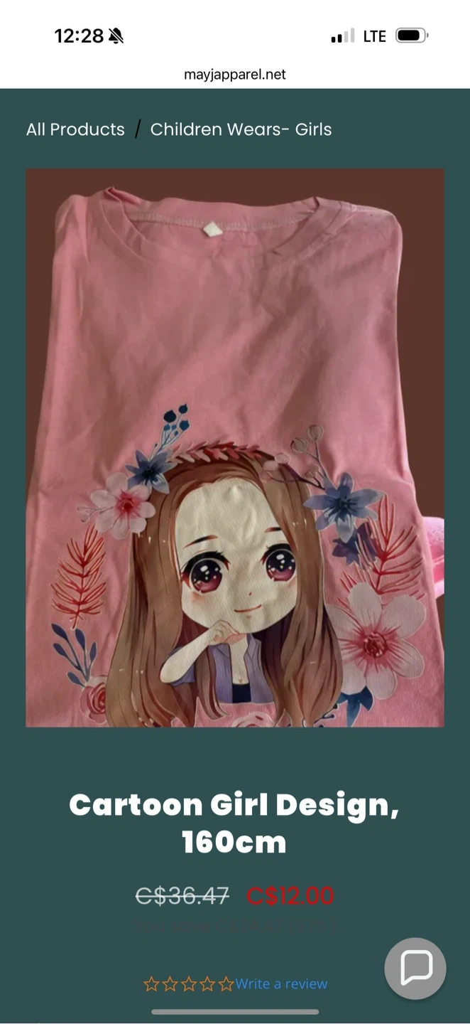 Selling a super cute cartoon girl design t-shirt! The size is 160cm.