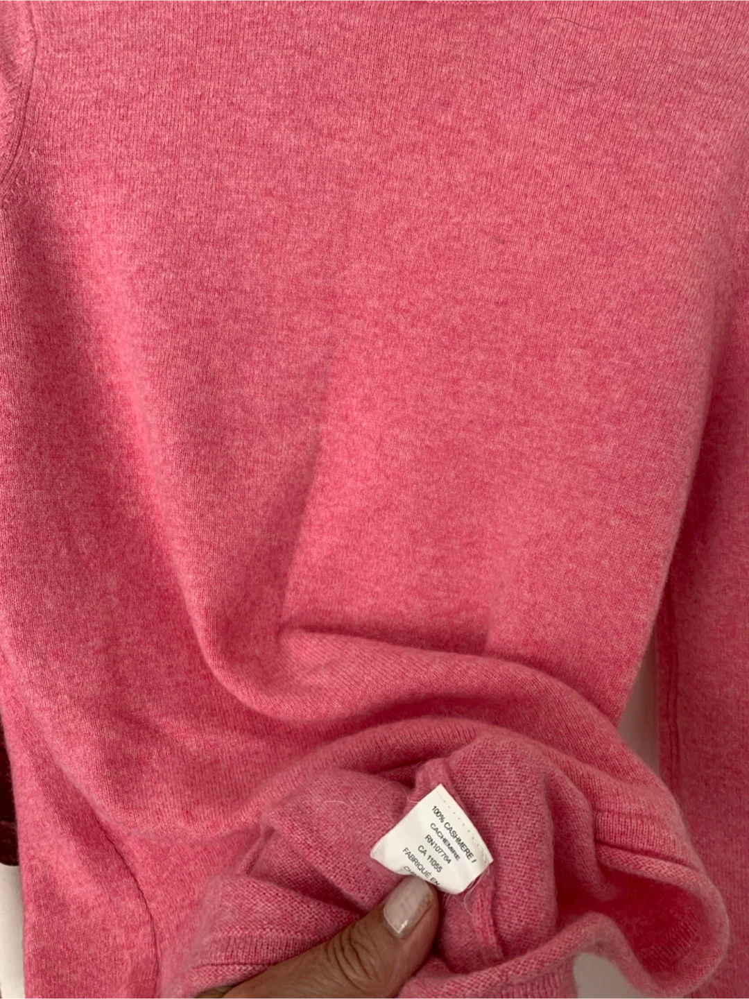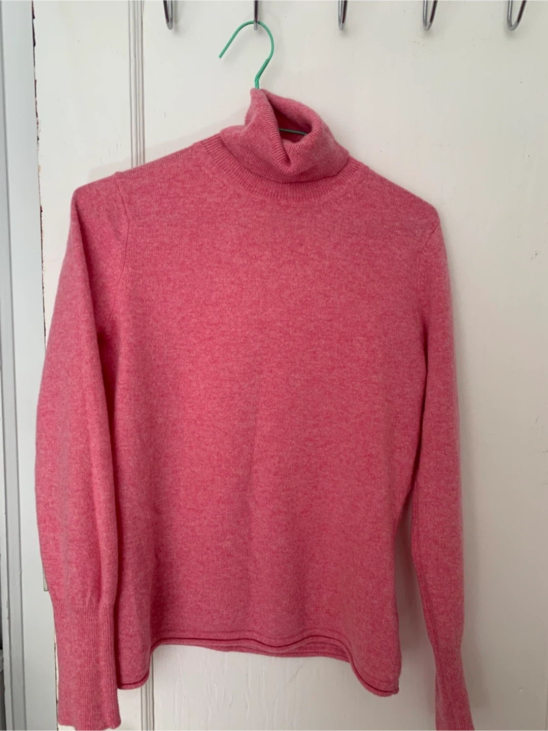 Cozy up in this beautiful pink cashmere turtleneck sweater! It's made of 100% cashmere, so it's super soft and warm. Perfect for the cooler weather