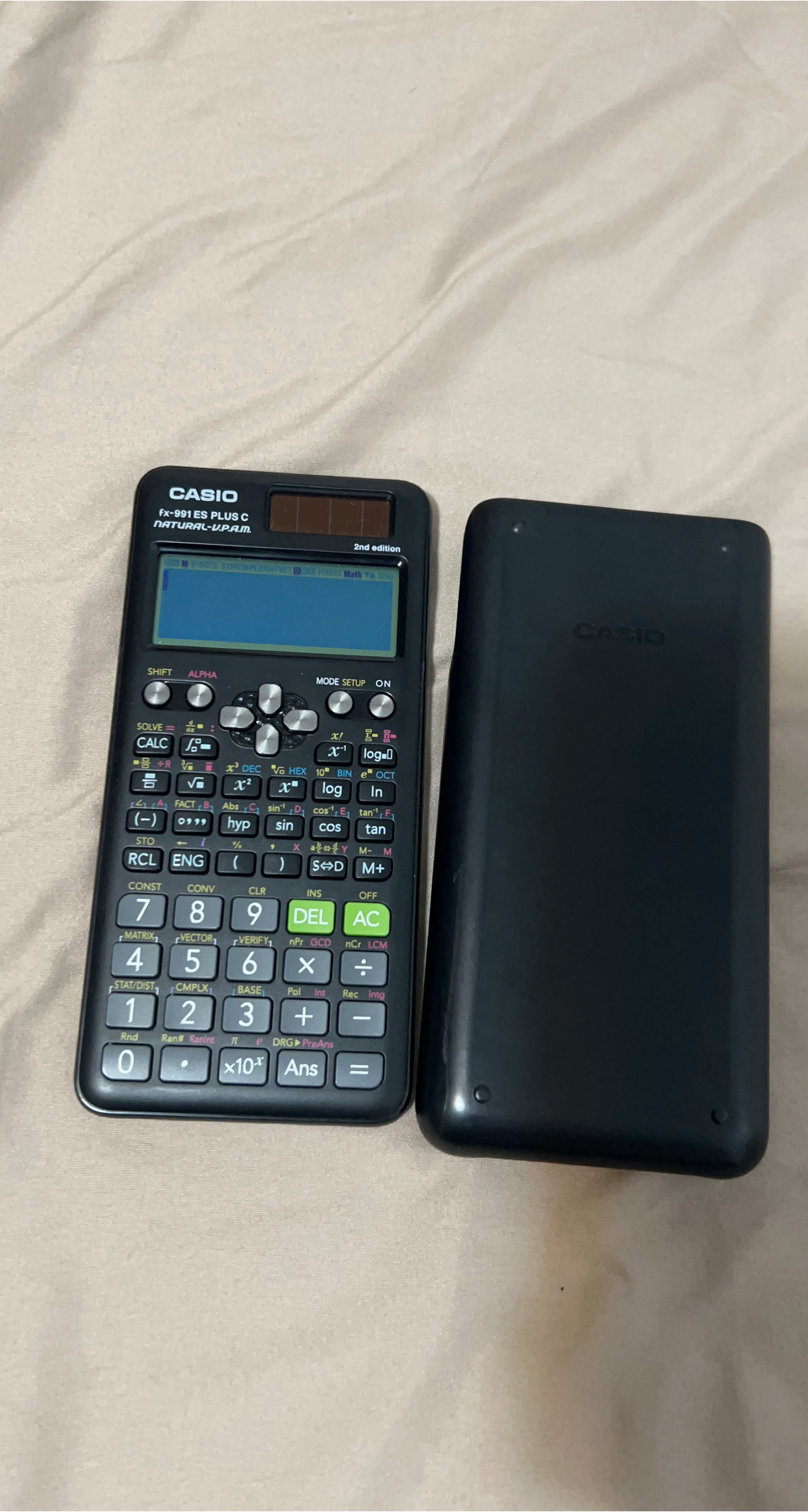 Selling a Casio fx-991 ES PLUS C calculator. It's in great shape and comes with its protective cover. Perfect for students or anyone who needs a reliable scientific calculator!
