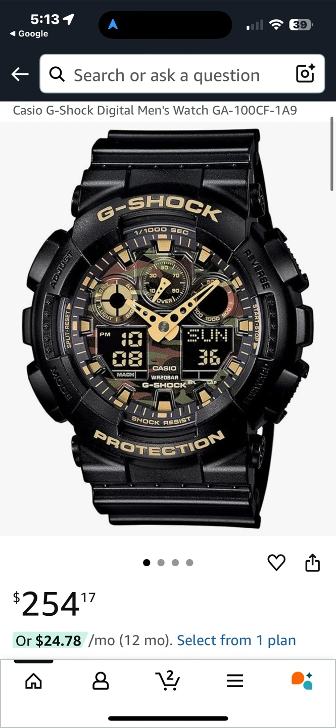 Selling a Casio G-Shock Digital Men's Watch, model GA-100CF-1A9. It comes with the original box and packaging. This watch originally retailed for $254.17. It's in great condition .