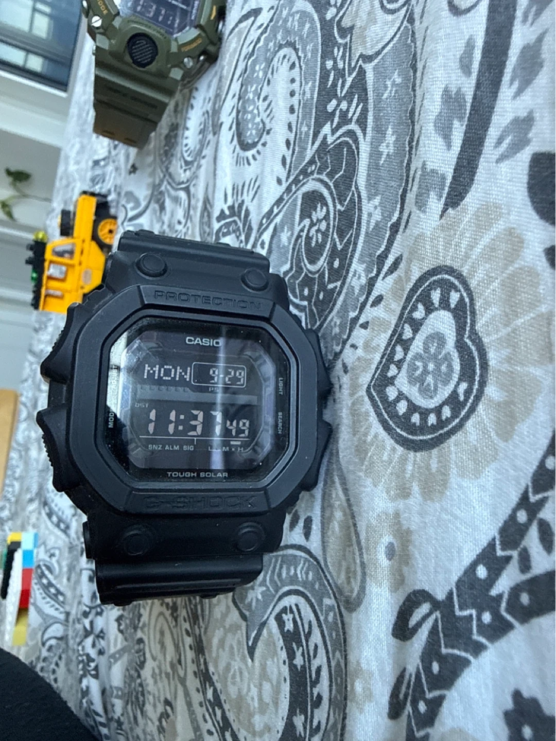 Selling a Casio G-Shock watch. It's in good condition and ready for a new wrist! It has the classic G-Shock look and is known for being tough and durable. GX56BB Black color Pickup is from Oakville. Cash.