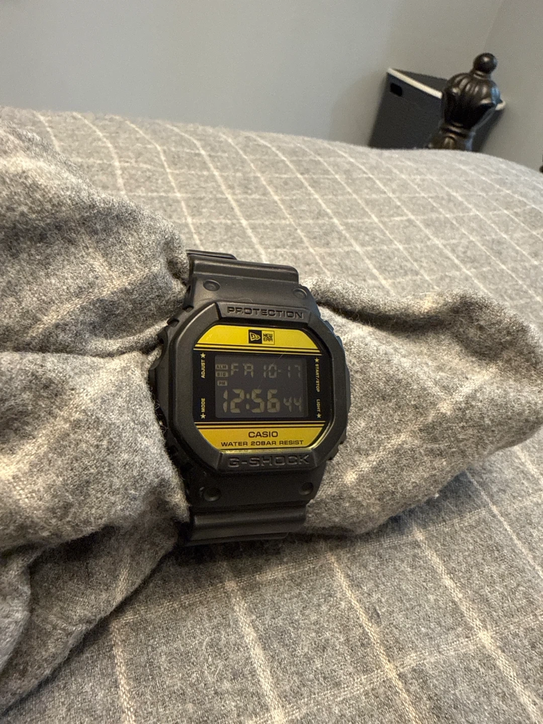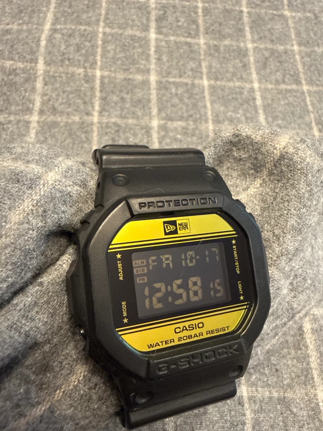 Selling a Casio G-Shock DW-5600NE-1 watch in collaboration with New Era. It's in great condition and ready for a new owner! This watch is water resistant to 200 meters.