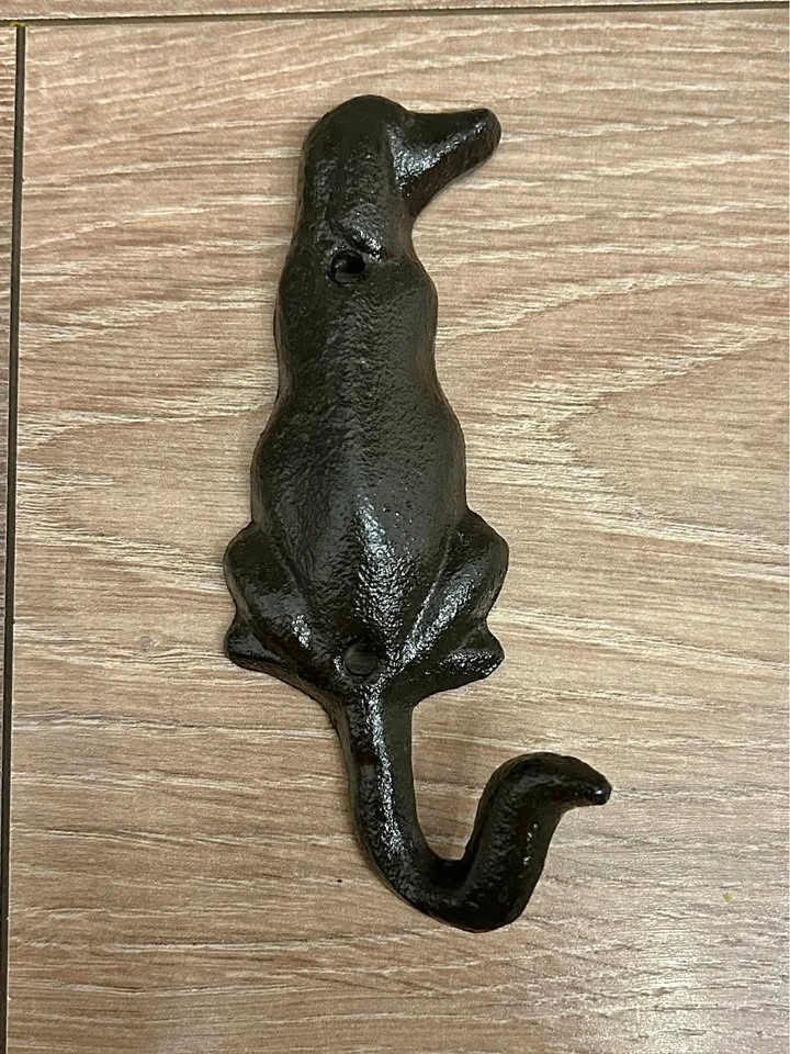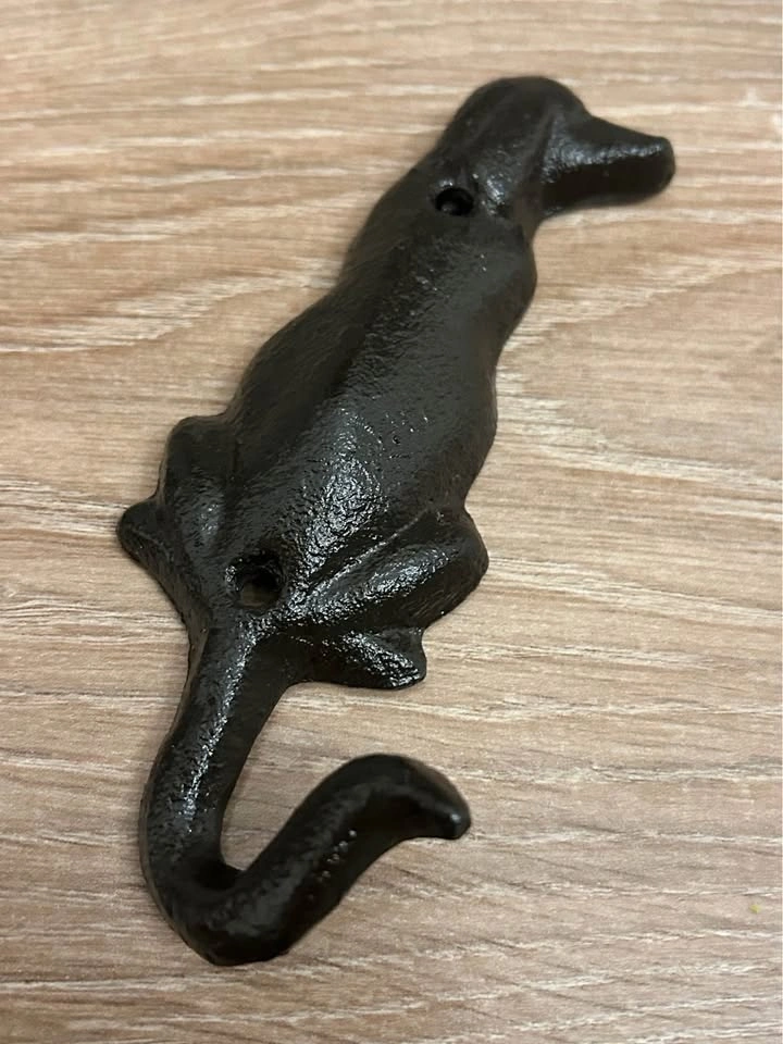 Charming cast iron wall hook shaped like a dachshund dog with a tail hook. Perfect for hanging keys, leashes, hats, or small items. Size: approx. 5 inches (see tape measure photo for scale) Material: Cast iron with black finish Easy to mount – has two pre-drilled holes for screws Great rustic or farmhouse décor piece Pick up: Seton area, Calgary. See also my other lots. Open to your questions and suggestions. If necessary, I provide additional photos. These are not new things, so please look carefully at the photos and videos. Sizes are submitted on request and also using a tape measure in the photo.