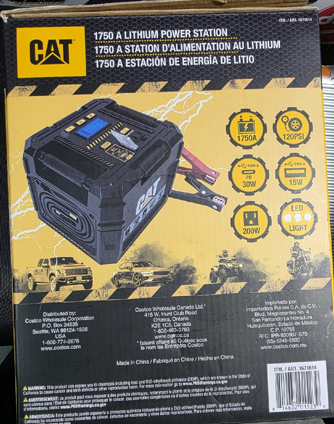 Selling a CAT 1750A Lithium Power Station. It can provide 1750A jump starting power, and also has a 120PSI air compressor. It features Type-C (PD 30W) and Type-A (15W) charging ports, plus a 200W LED light for visibility