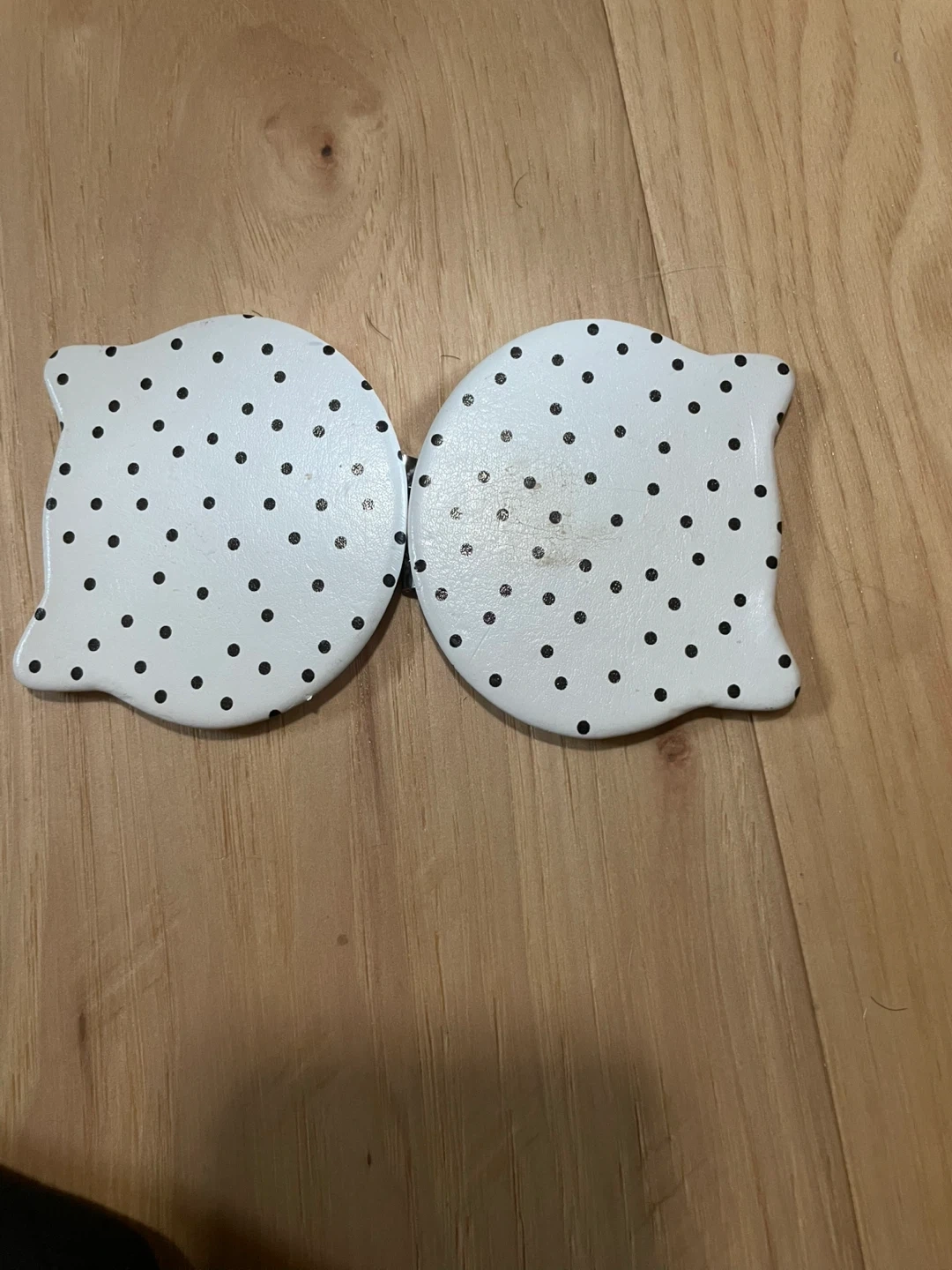 Super cute cat-shaped compact mirror in great condition! Both mirrors are perfectly clear β just a small imperfection on one side of the outer casing (barely noticeable). Perfect for your purse, makeup bag, or as a fun little gift. π± Cute and portable design β¨ Mirrors are flawless π« Small cosmetic flaw on the outside only Cleaning out my home and no longer need it. Cash preferred, but e-transfer also accepted.