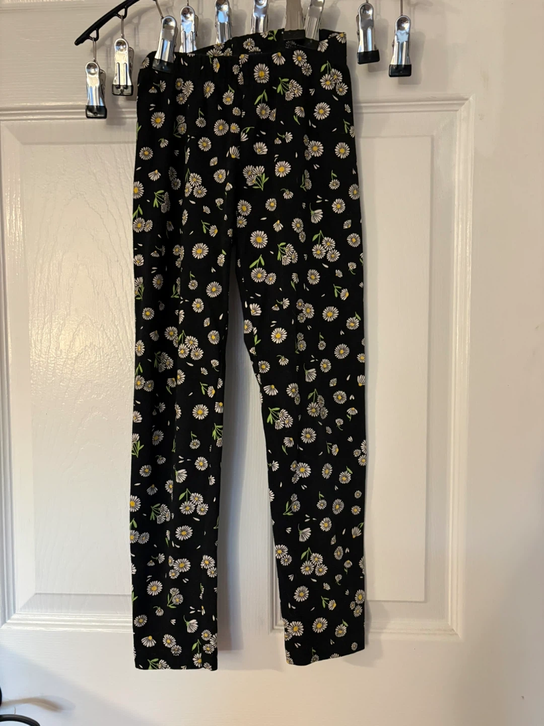 60Cute pair of leggings with a daisy print! These are in great condition and would be perfect for spring or summer. They're black with small white and yellow daisies all over ** smoke free Cat friendly house **