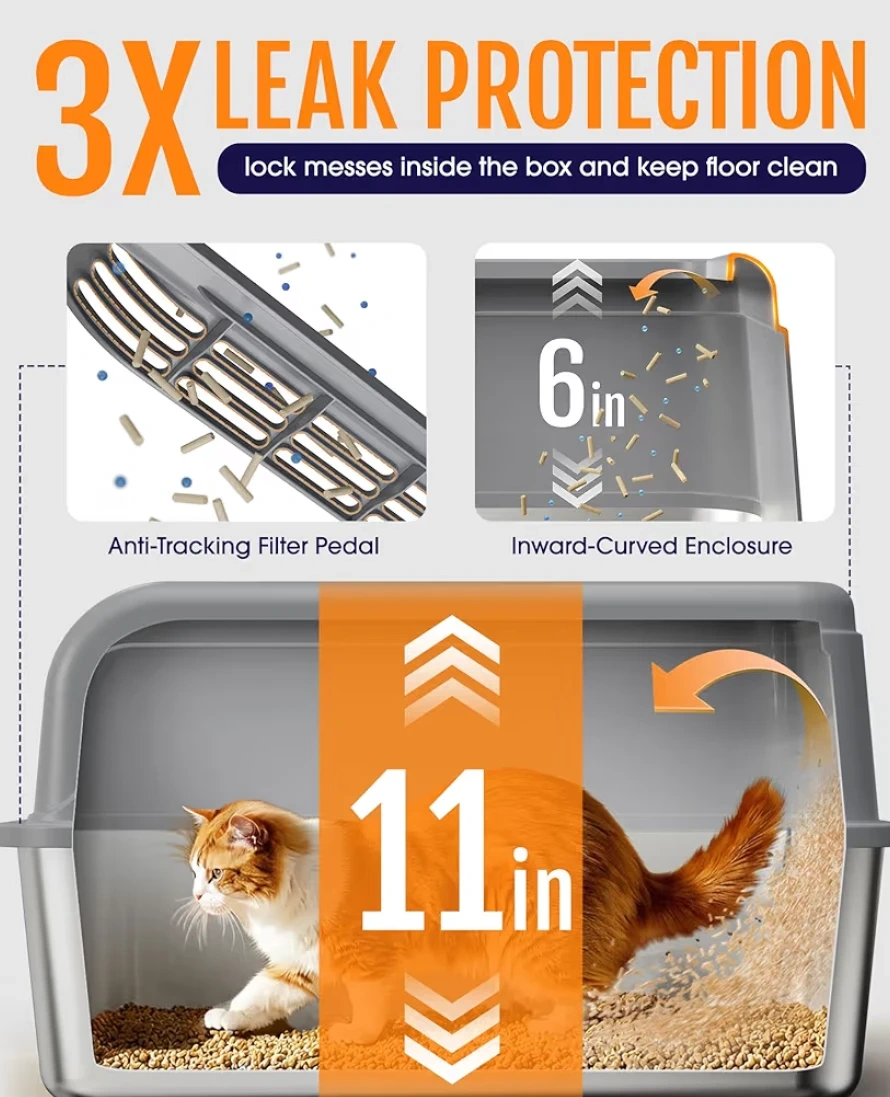 70Keep your kitty happy with this great litter box! It's designed for kittens or petite cats and fits well in limited spaces. Key features: - 6" corrosion-resistant PP enclosure - Practical filter pedal - Nano-polished stainless steel box - 4 ultra-quiet & non-slip pads - Premium scoop with hook Dimensions: - 5 inches tall - Box: 6 inches tall - 13.5 x 17.3 inches