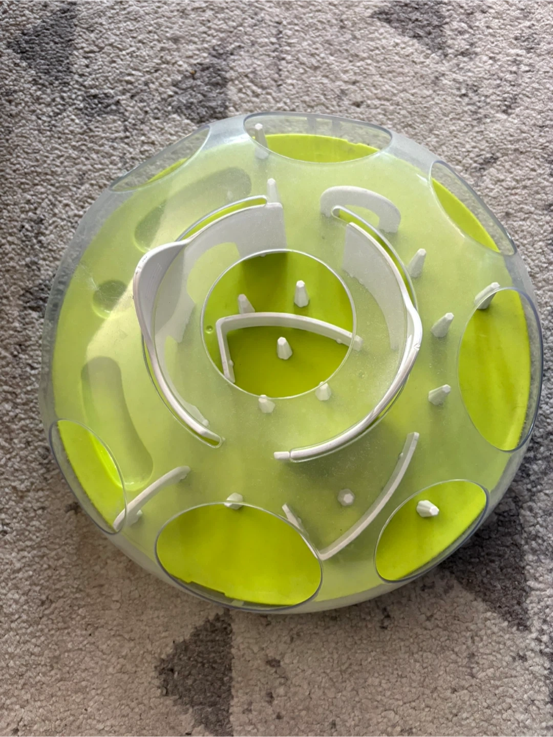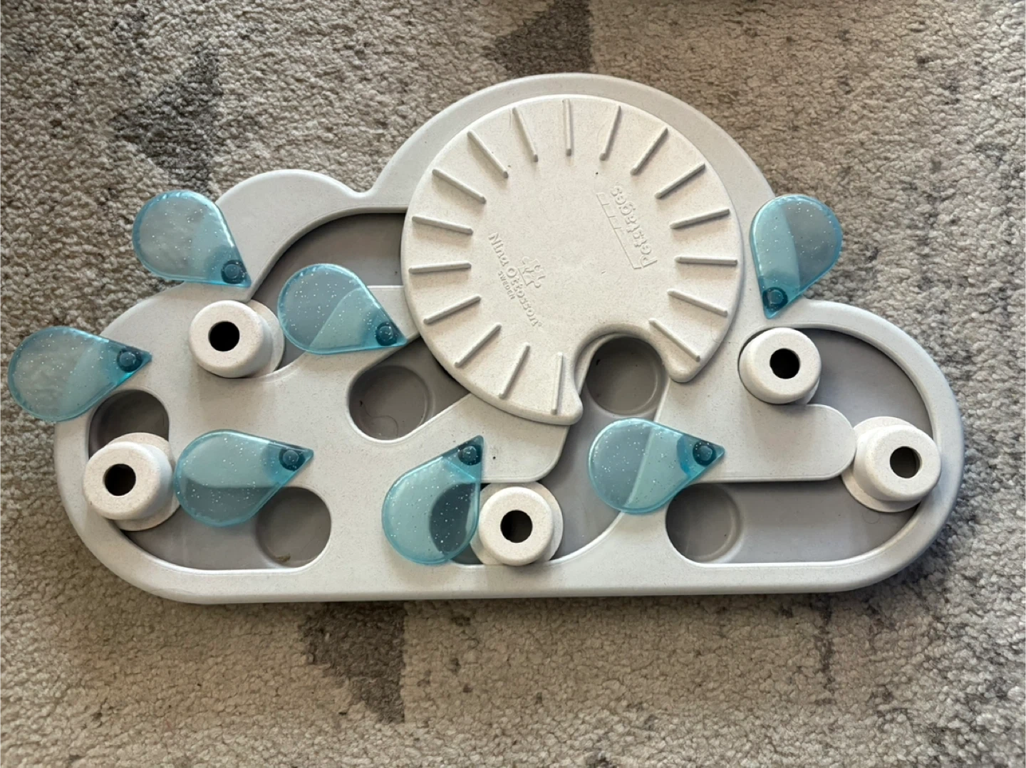 I'm selling two Nina Ottosson by Outward Hound cat puzzle toys. One is the Rainy Day Puzzle and the other is the JUXANOS interactive puzzle maze. They are both in good condition, cleaned and ready for a new home! These toys are great for keeping your cat entertained and mentally stimulated. Good for both kittens and adult cats. My cat has graduated to a harder puzzle now, so we don’t need these anymore. DIMENSIONS: The green circular puzzle has a diameter of 12 inches. The blue cloud has a width of 15.5 inches, and a length of 9.5 inches.