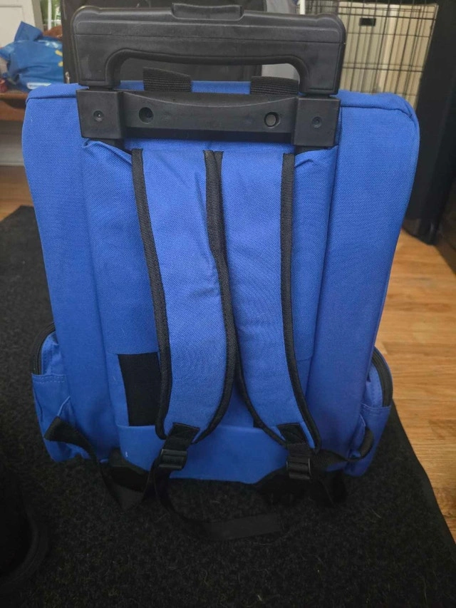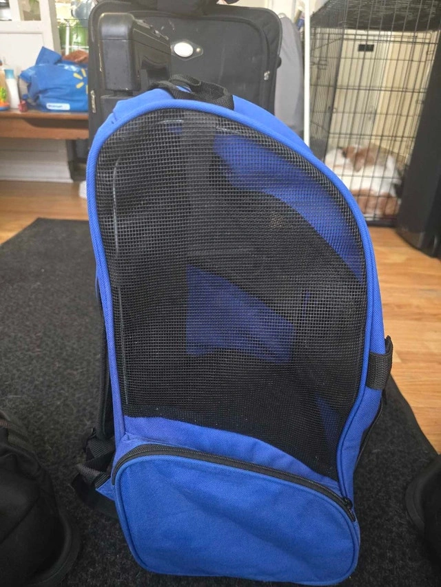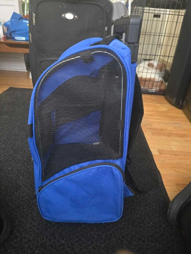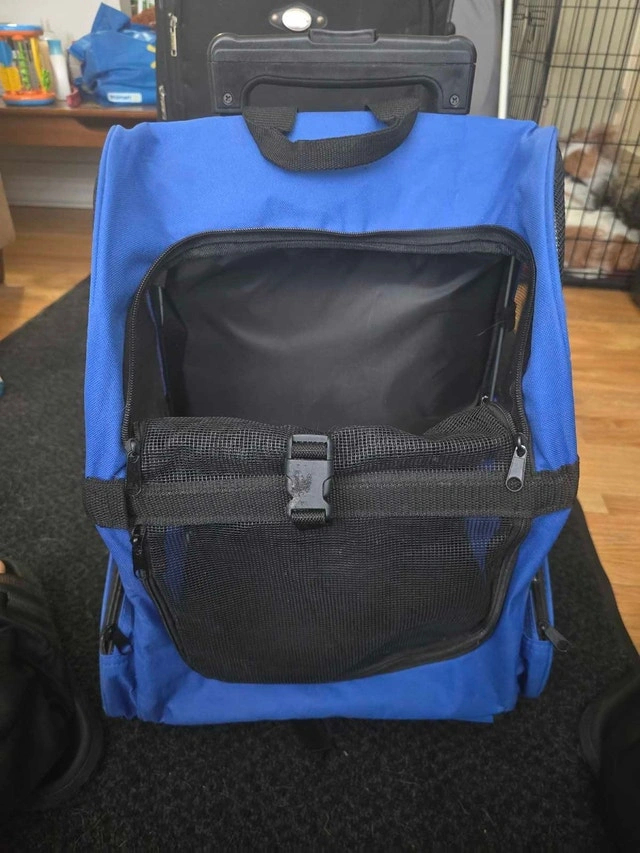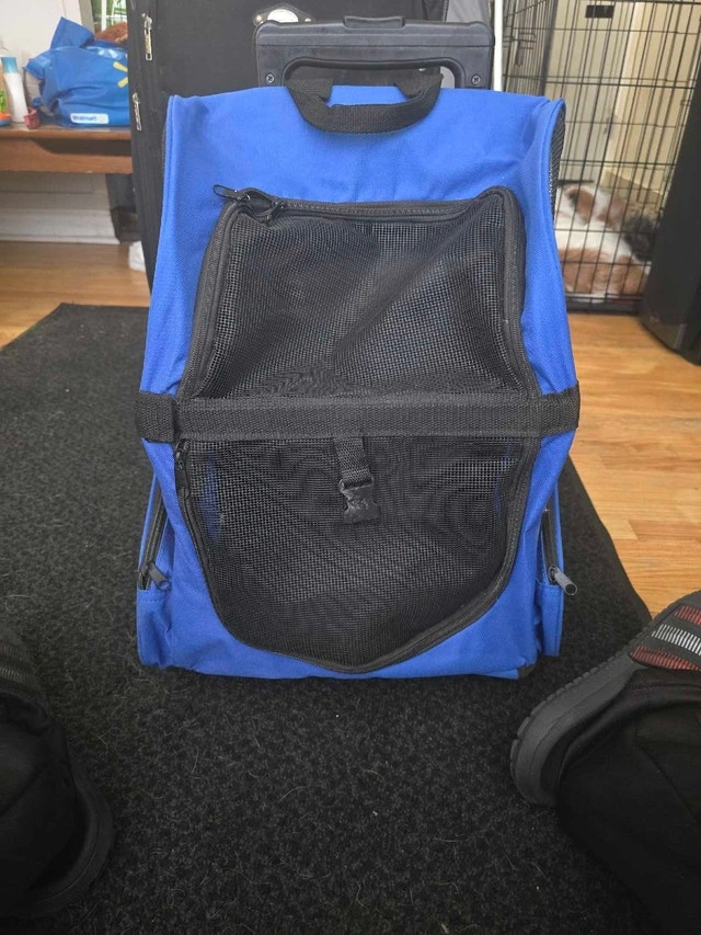5This is a blue cat/small dog carrier backpack with a telescoping handle and wheels for easy transport. The carrier has mesh windows for ventilation and visibility, and it's in very good condition. Perfect for vet visits or travel. * Telescoping handle * Wheels for easy transport * Mesh windows for ventilation Looking at similar carriers on Kijiji, a fair price seems to be around $30 OBO If the ad is up, it's available—no need to ask! Ready for a new furry friend's adventures! Payment: Cash accepted