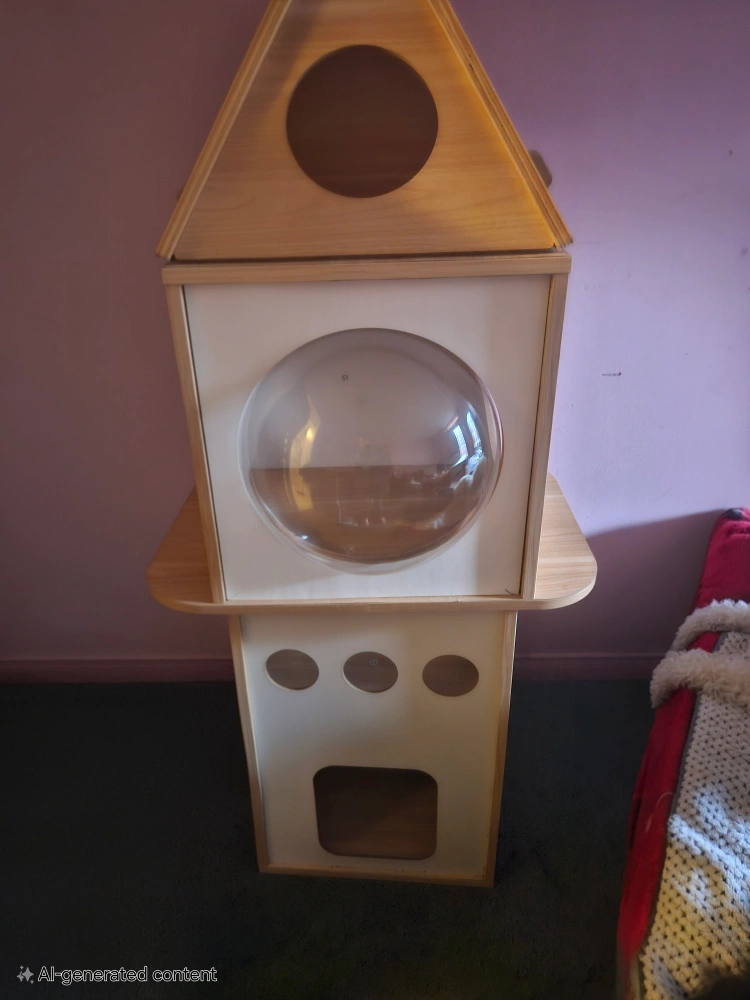 31Selling a gently used cat tower/house. It's in great condition and provides a fun and cozy space for your feline friend. It features multiple levels and openings for your cat to explore and relax. Perfect for any cat owner looking to add a stylish and functional piece to their home!