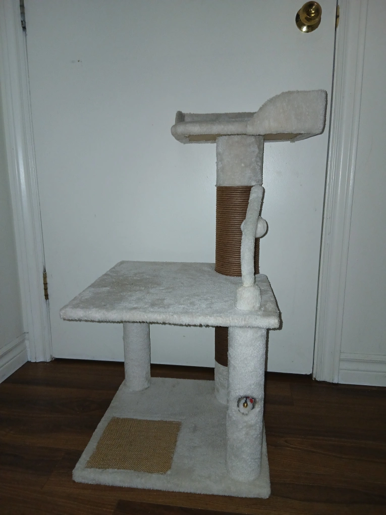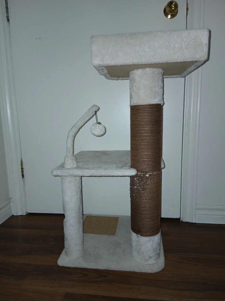 Selling a cat tree/cat tower. It has some wear and tear, as shown in the pictures, but it's still in good condition and ready for a new home for your feline friend!