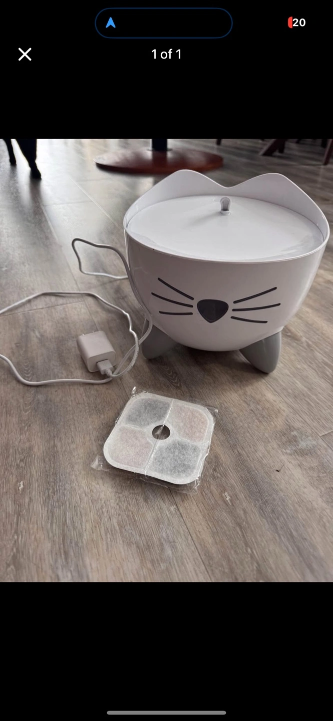68Cat water fountain with a cat-shaped design. Comes with a power adapter and a new filter. Only used for a few weeks and got a bigger one.