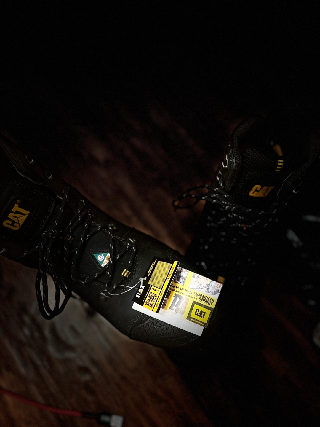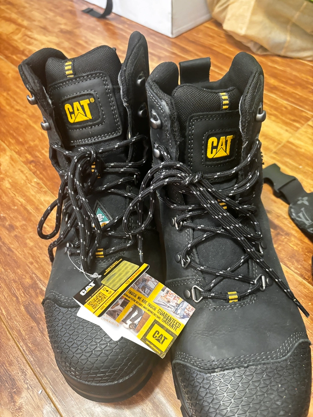62Got as a gift ,and it’s not my size so Men's black leather Caterpillar work boots. Lace-up style, wide width. Good condition. Grade 1 safety rated.