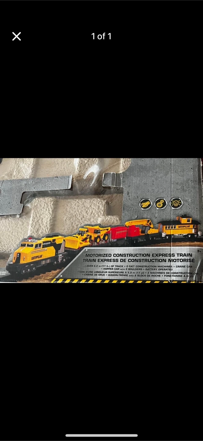 Selling a Caterpillar Motorized Construction Express Train set! It includes over 5.2m (17 ft) of track, 2 CAT construction machines, a crane car, and a hopper car with 2 boulders. It's battery operated and ready for fun