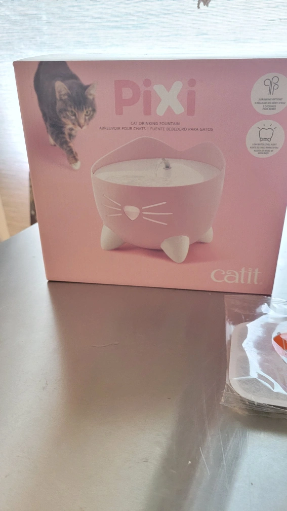 Selling a Catit Pixi cat drinking fountain. It's in great condition and comes with the original box and a filter! Your cat will love drinking from this cute fountain