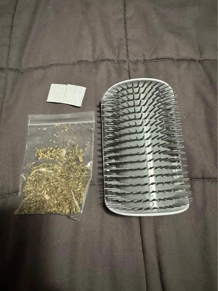 Your cat will love this self-grooming brush! Attaches easily to any corner or flat surface for endless brushing fun. ๐Ÿงถ Includes: โœ”๏ธ Sealed bag of catnip โœ”๏ธ Mounting adhesive strips โœ”๏ธ Grooming brush ๐Ÿ“ฆ Brand new โ€“ only opened for photos! ๐Ÿ“ Pickup in Burlington ๐Ÿ’ฐ $10