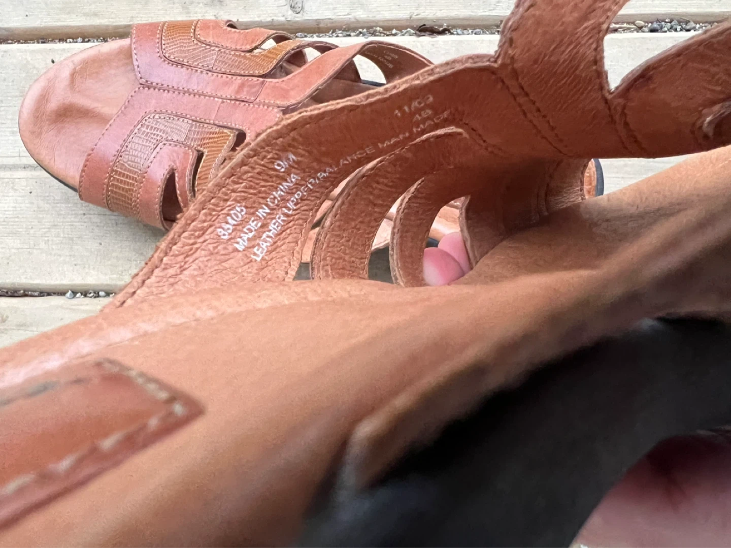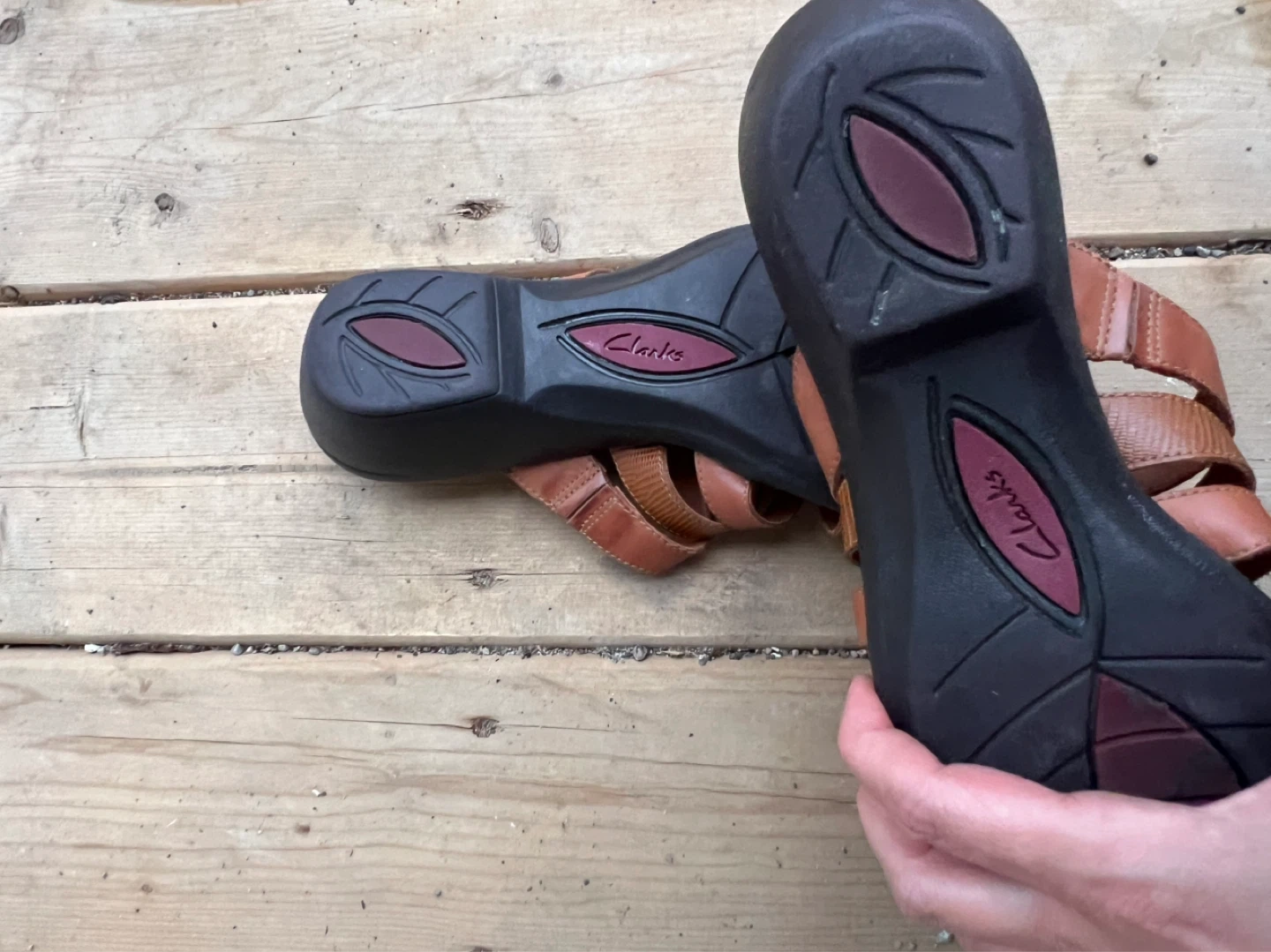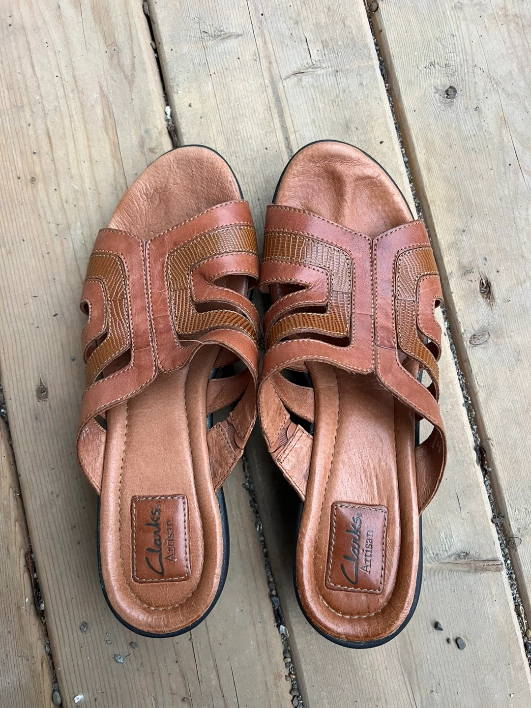 Very comfortable and soft. These Clarks Artisan sandals are made with a genuine leather upper. Strappy design for a comfortable fit. Size 8.5/9