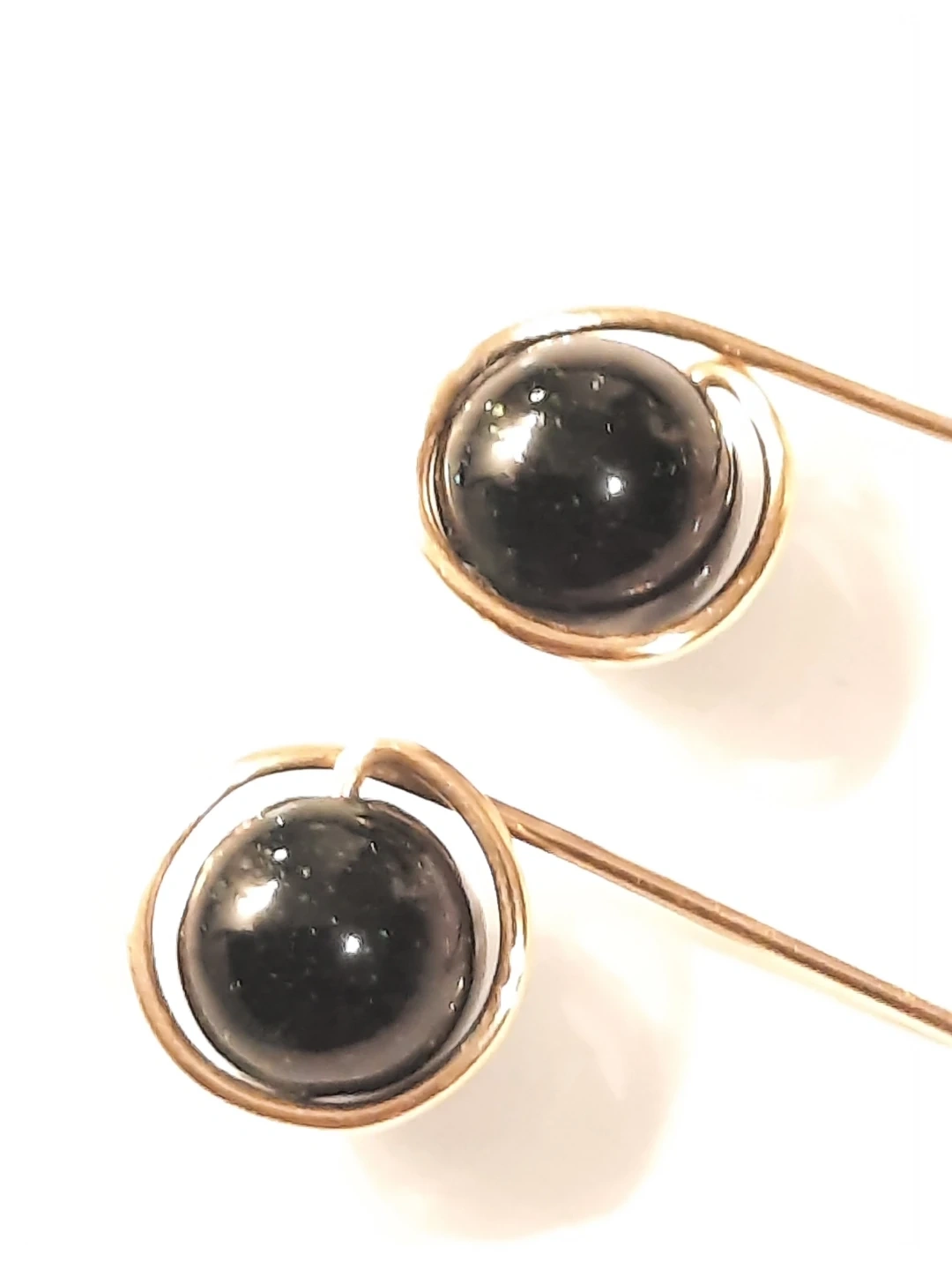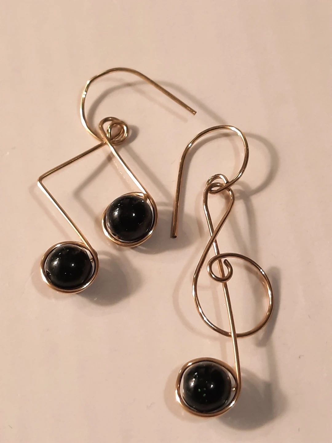 Gold-tone Necklace and Music Note Earrings Set with Black Beads