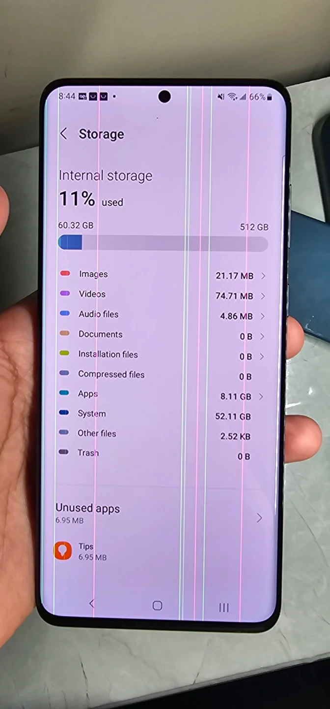 This is a Samsung smartphone. It has 556 gb storage i add a coll transparent back glass the only issue is the lines on the screen not a big deal though if you want you can trade me things