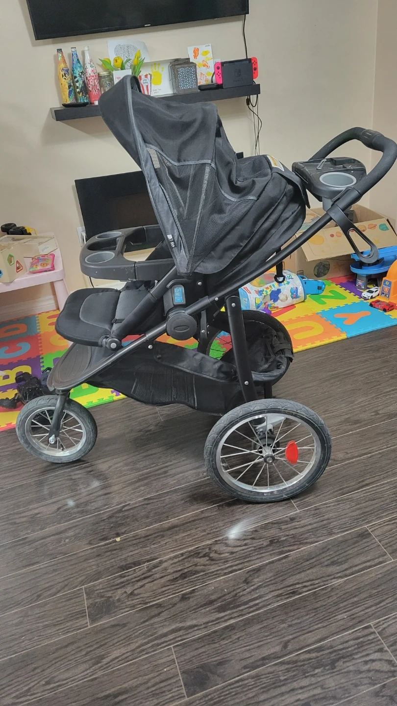 Graco jogging stroller includes a jogger with suspension BUT NO CAR SEAT with secure click-in technology.