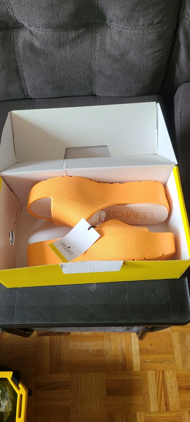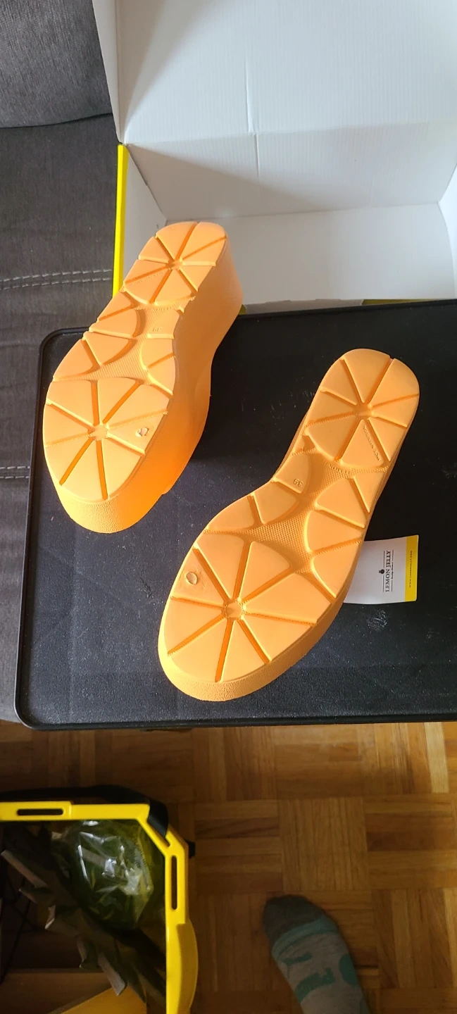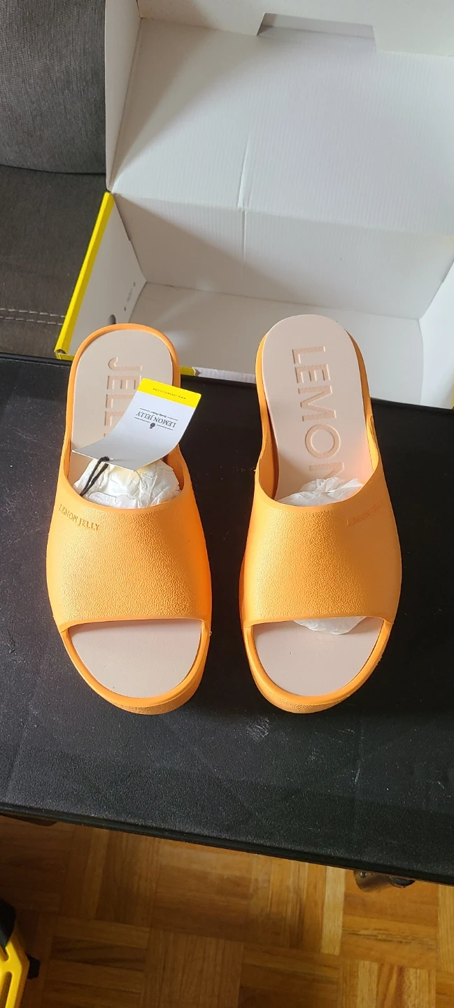 Brand new Lemon Jelly slide sandals in a bright orange colour. These platform sandals are made from a rubber material. Comes with the original box and tags.