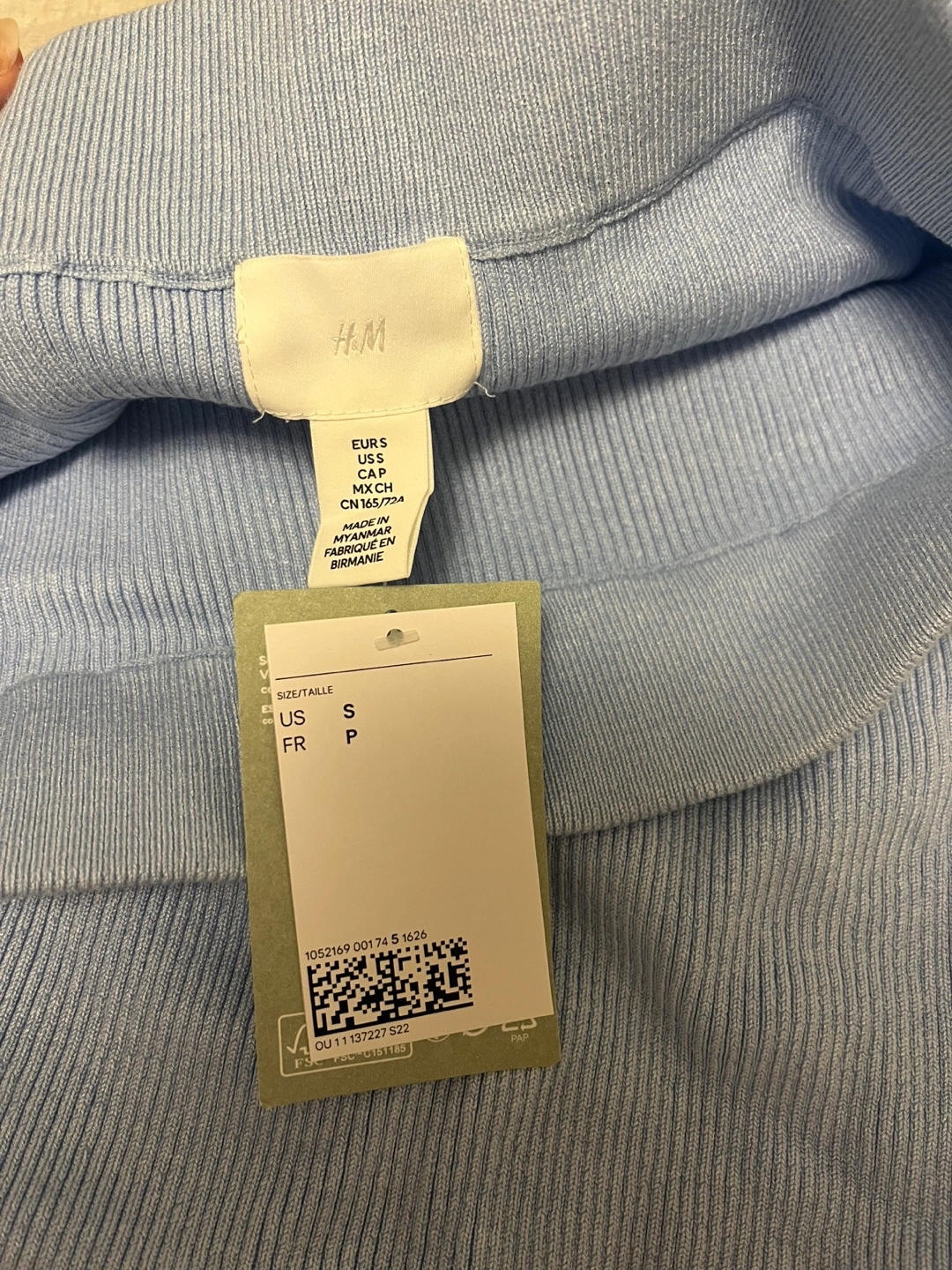H&M Light Blue Ribbed Knit Midi Skirt Size Small
