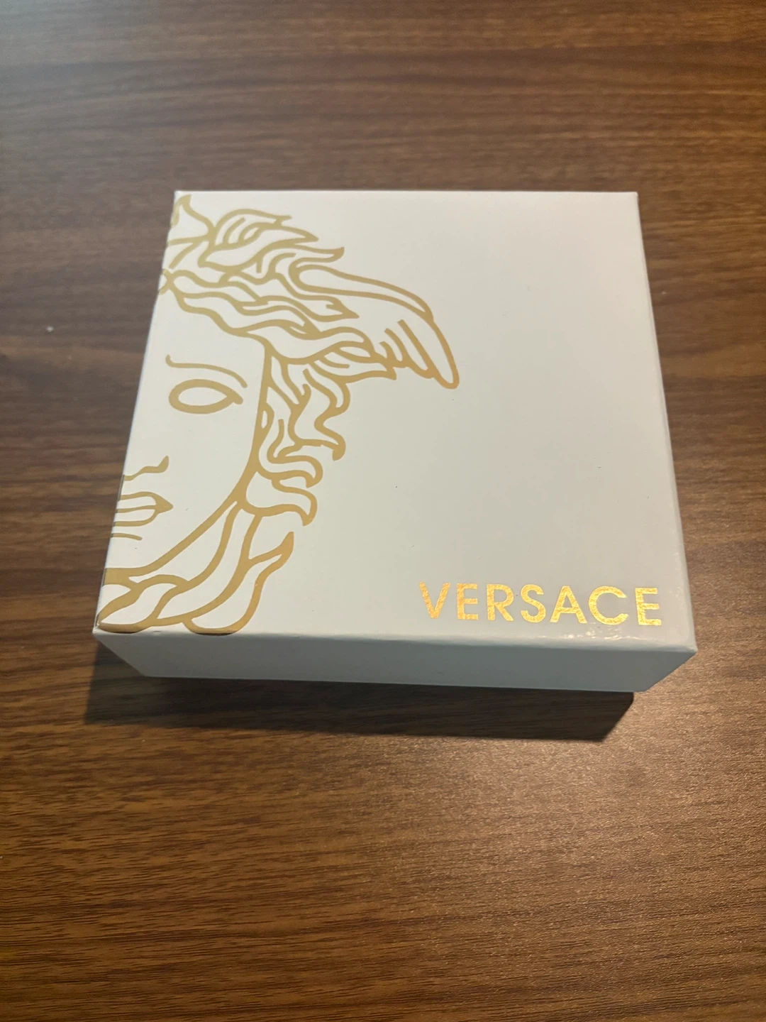 Black leather Versace belt featuring the iconic Medusa head buckle. It's in excellent condition and comes with its original box. This belt adds a statement to any outfit.