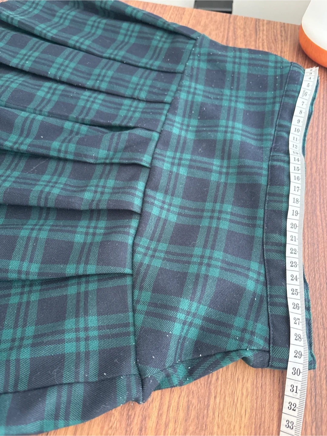 This H&M mini skirt features a classic green and navy plaid pattern with pleats. It's made of a polyester blend and has an elastic waistband. This skirt is perfect for summer wear or for a stylish school uniform look!