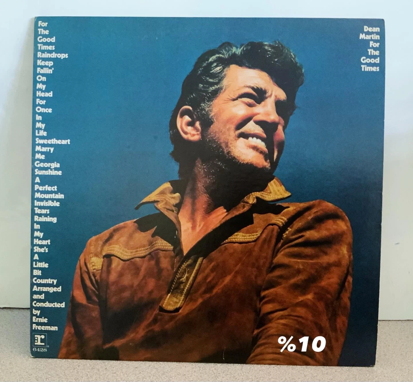 Dean Martin's 'For The Good Times' vinyl record. Includes tracks like 'For The Good Times', 'Marry Me', and 'Georgia Sunshine'. Arranged by Ernie Freeman and produced by Jimmy Bowen.