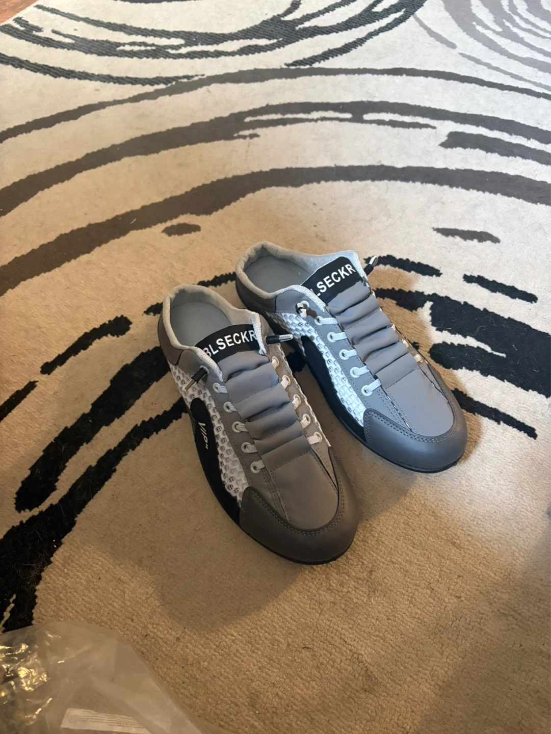 These men's slip-on sneakers feature a grey colour with mesh detailing. They're designed for comfort and ease of wear. The shoes have a rubber sole for traction.