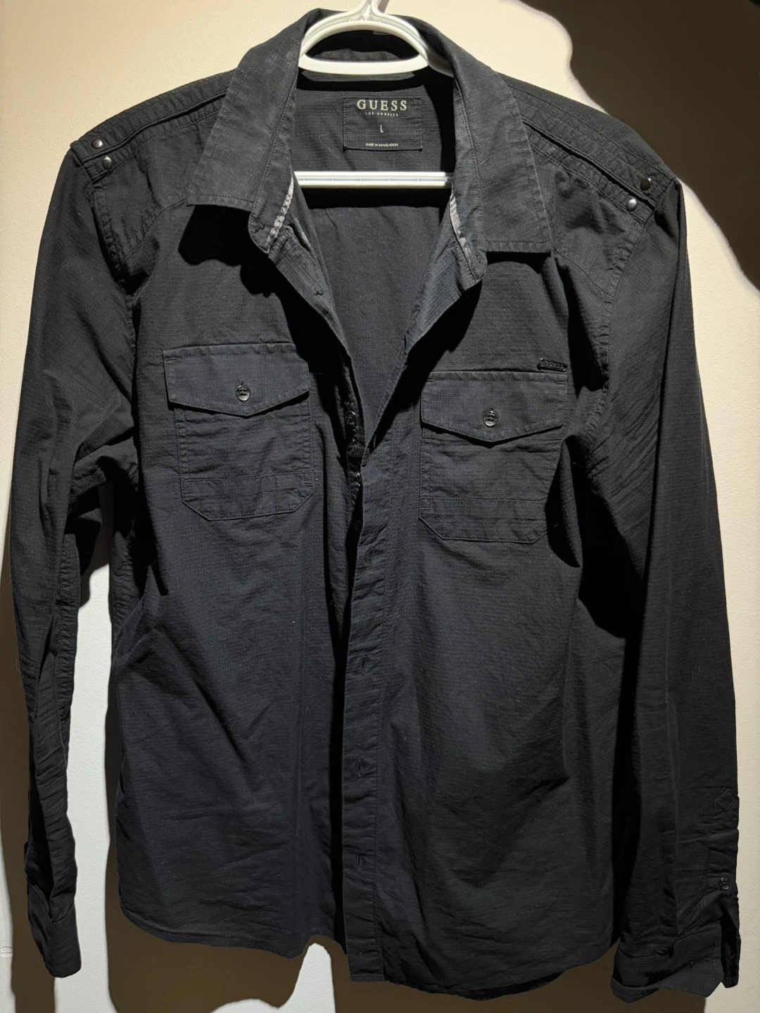 Here's a stylish black shirt from Guess Los Angeles in size L. It's in great condition and ready for a new wardrobe!