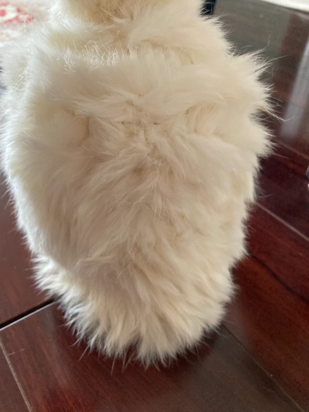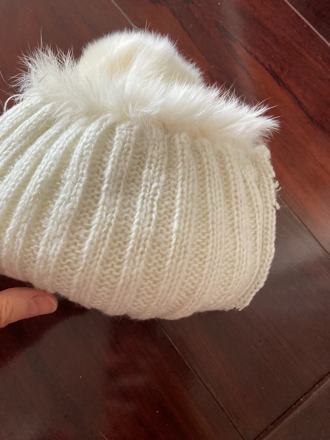 Cozy white fluffy extremely soft and silky fur with knitted warm lining. It's warm for chilly days. Ribbed texture for added style. Perfect for keeping your head toasty when it's cold out!